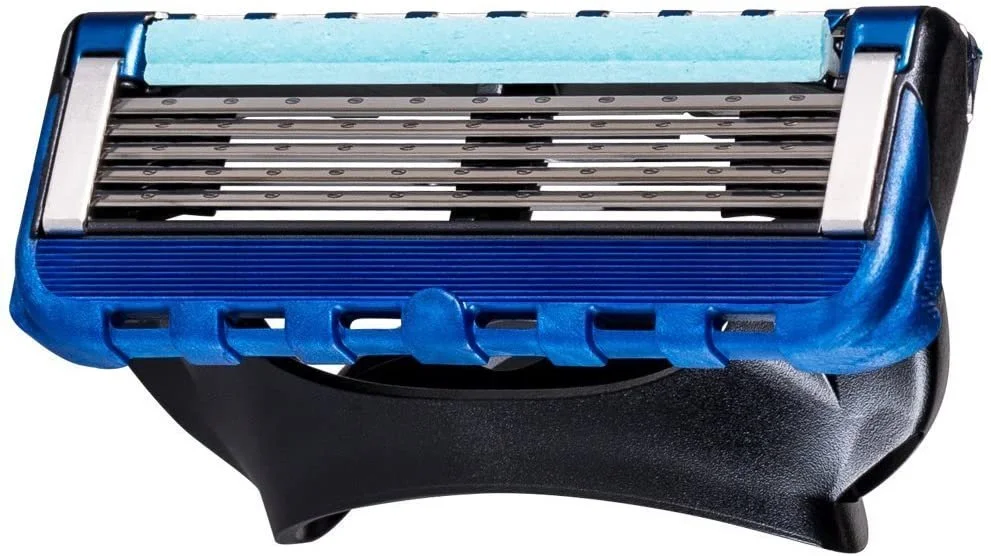 - Five precision blades, thus less pressure per blade for a comfortable shave (vs. Mach3)