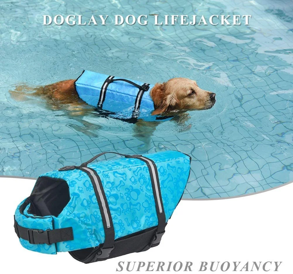 - 【SUPERIOR BUOYANCY & BREATHABLE MESH DESIGN】The dog life jacket made of high grade polyester oxford & nylon and high buoyancy material, the same as luxury comfort human life jacket material, and enough to float the dog on the water. The upgraded Doglay dog life vest with breathable mesh underbelly that allows for proper water drainage and quickly dried, let your puppy play easily and freely in the water.