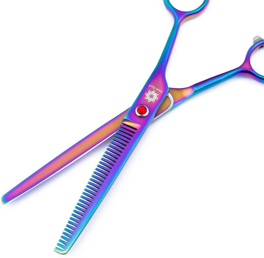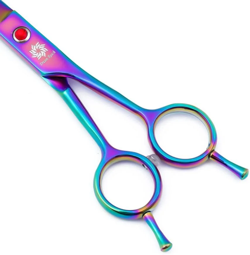 Dream Reach 8 Inches Professional Pet Grooming Curved Scissors, 440C Japanese Steel Straight & Curved & Thinning & Chunker Shears/Scissors for Dog Cat and More Pets(Rainbow)(8” Curved Scissors - 01)