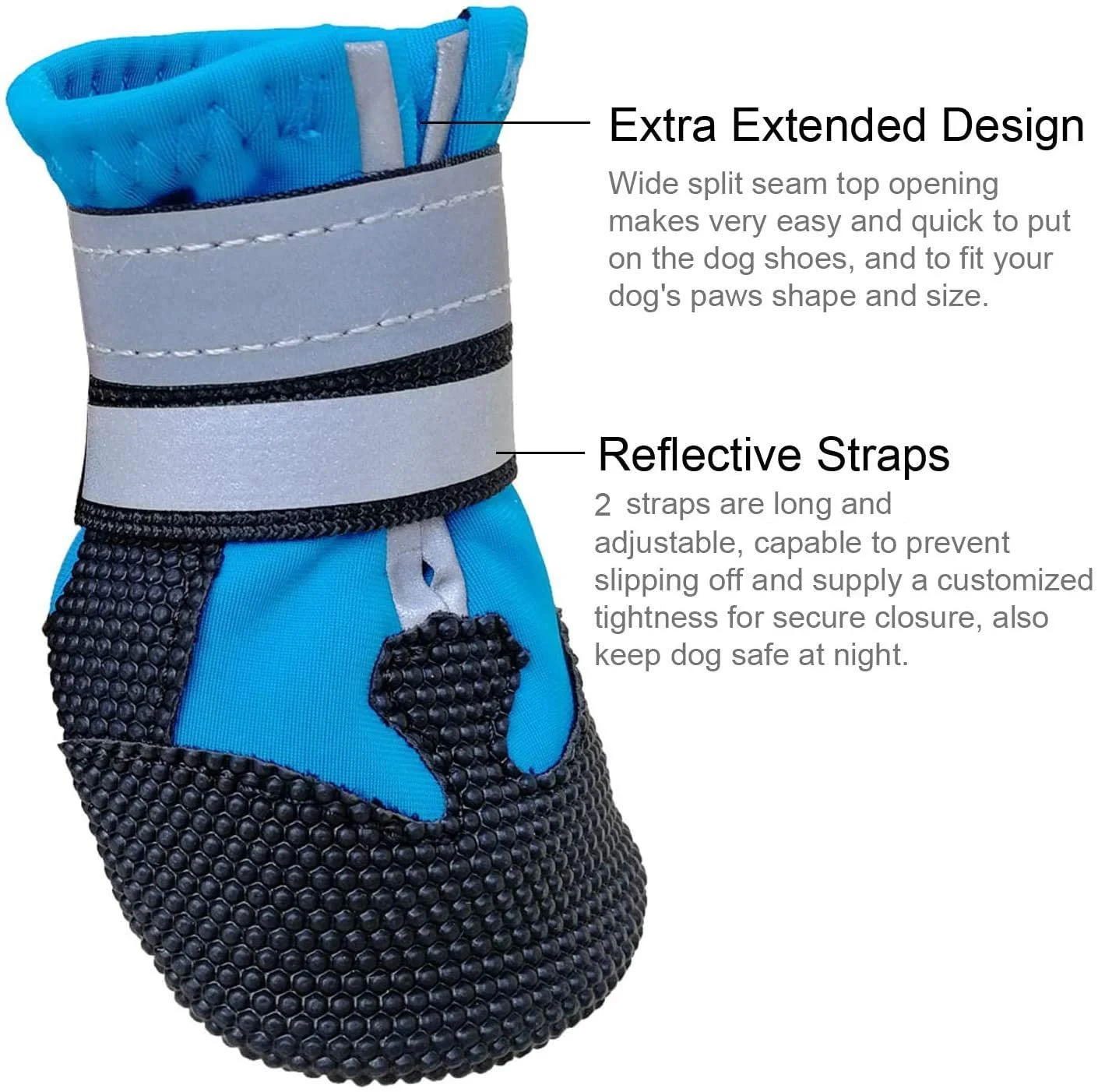 - Secure and Adjustable - Easy to put on / off, these dog shoes expands with a wide split seam opening and two adjustable and reflective straps to ensure a tight fit, also make your dog safe at night