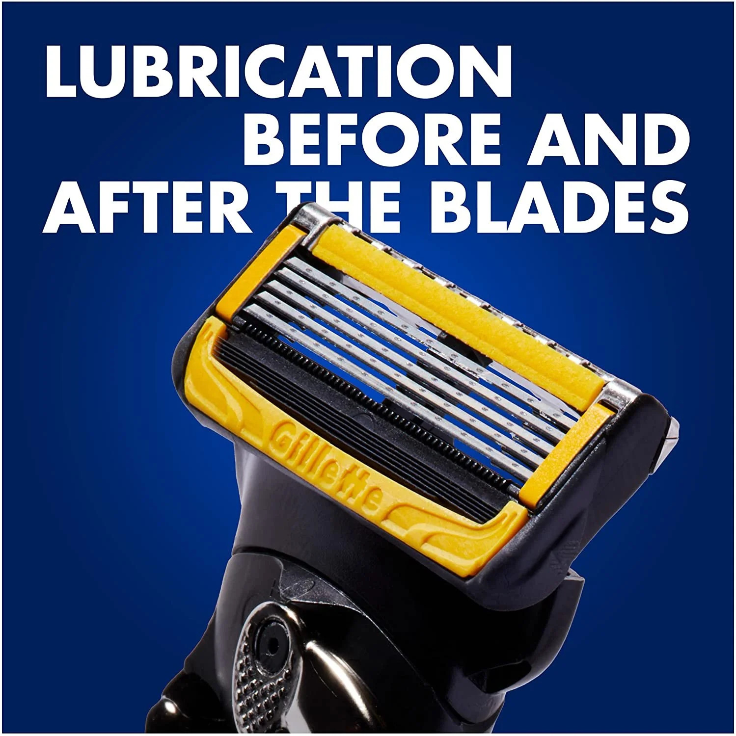 The Gillette ProShield men's razor with lubrication before and after the blades, shields skin from irritation while you shave for closeness and comfort. Battery-powered soothing micropulses help you to reduce friction so the razor glides even more smoothly over the skin. The FlexBall technology responds to contours and gets virtually every hair effortlessly. With its blades spaced closely together for incredible comfort and a precision trimmer on the back, you can dare to get close.