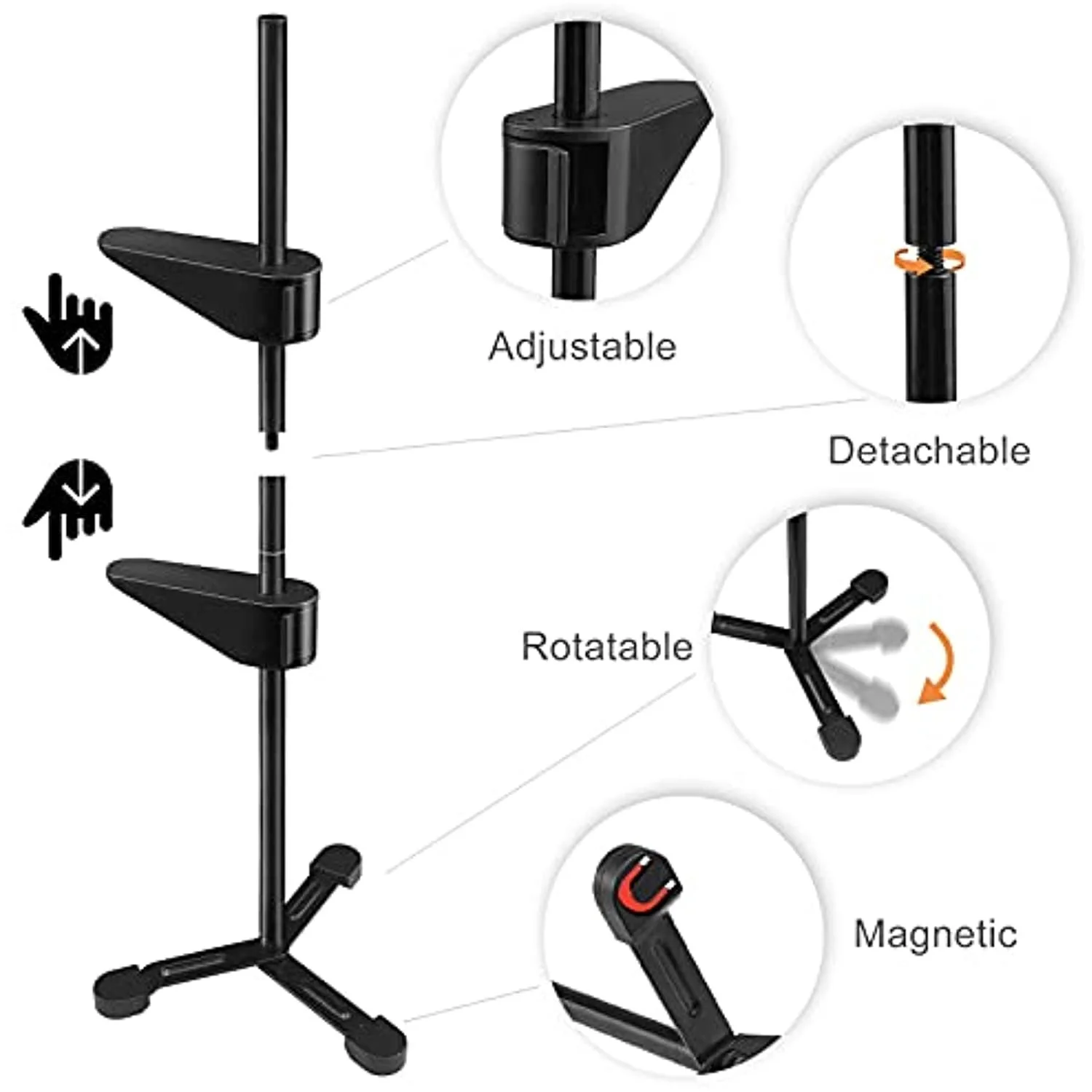 - 4.【Hidden Magnet】:The magnetic feet help the bracket stick to the case and stand firmly, you can also rotate one foot to get a better position.