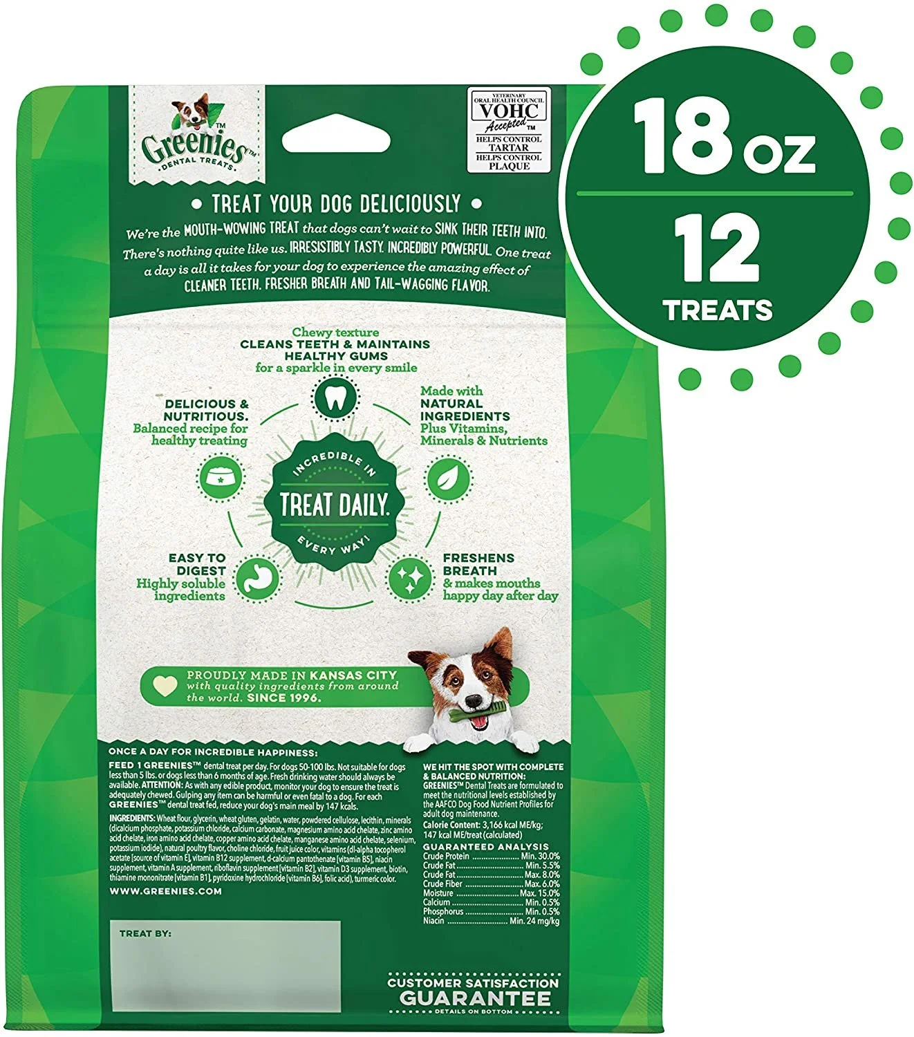 - Contains one (1) 36 oz. 36-count pack of GREENIES Original Regular Size Natural Dental Dog Treats; Natural Dog Treats Plus Vitamins, Minerals and Other Nutrients