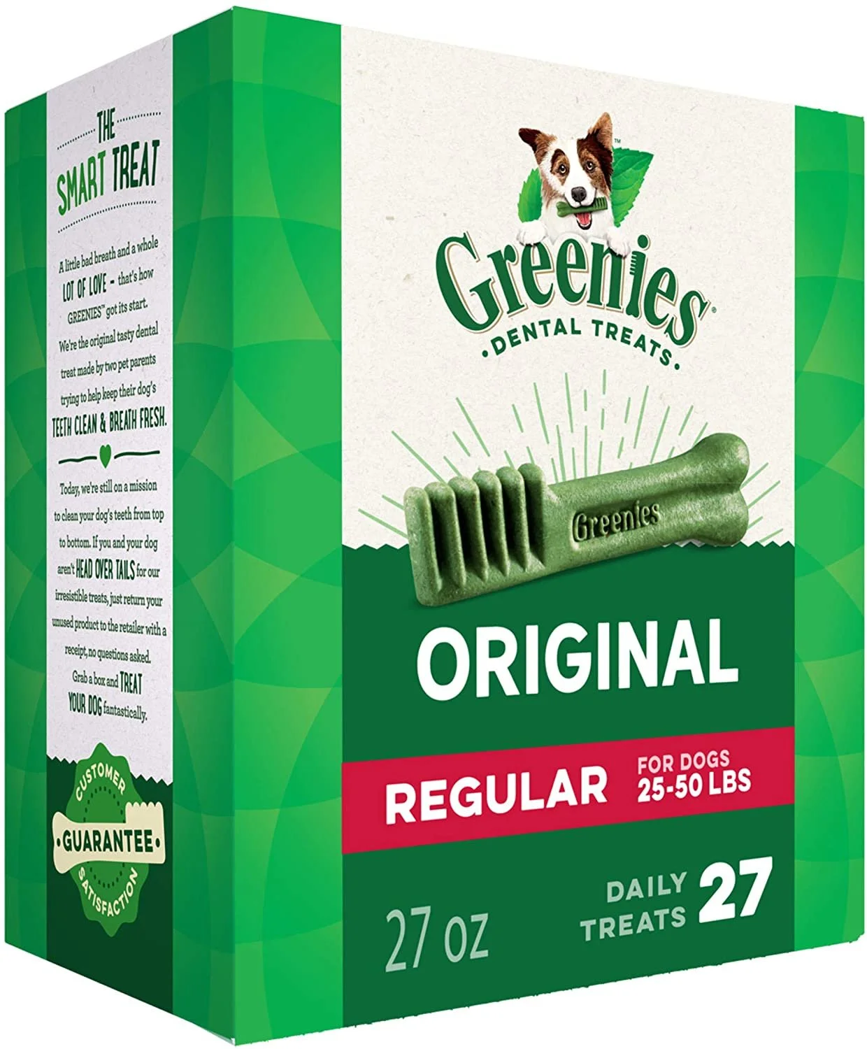 Greenies Original Regular Natural Dog Dental Care Chews Oral Health Dog Treats, 36 oz. Pack (36 Treats)