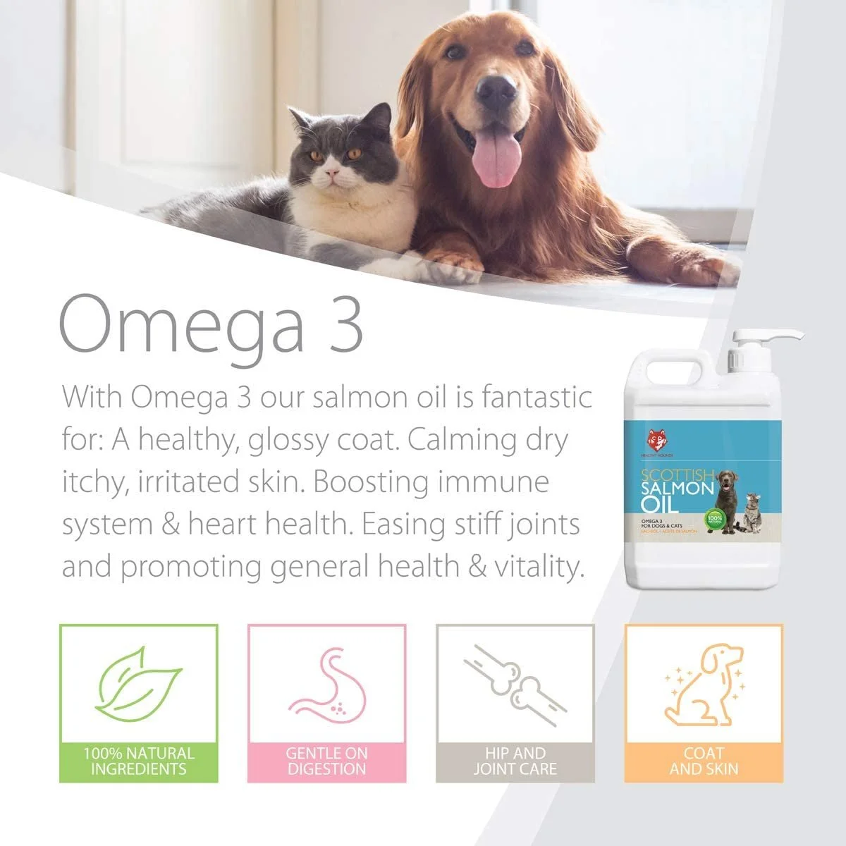 Healthy Hounds PUREST SCOTTISH SALMON OIL for Dogs, Cats, Horses, Pets 2500ml | 100% Natural Food Grade Fish Oil Supplement | Omega 3 for Skin, Coat, Itchy Dog, Hip Joint, Heart, Brain Health | UK