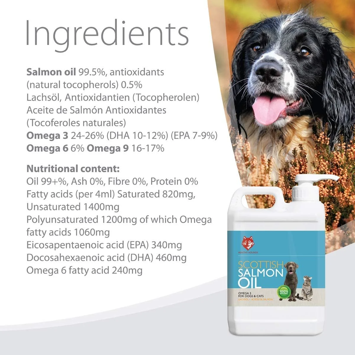 - 100% NATURAL PRODUCT: NO artificial additives, preservatives or colourings, Healthy Hounds Super Premium Salmon Oil is the best pure premium quality fish oil supplements for dogs. Great for a raw feeding supplement or BARF supplement. Fully traceable and strictly adheres to EU and GB laws.