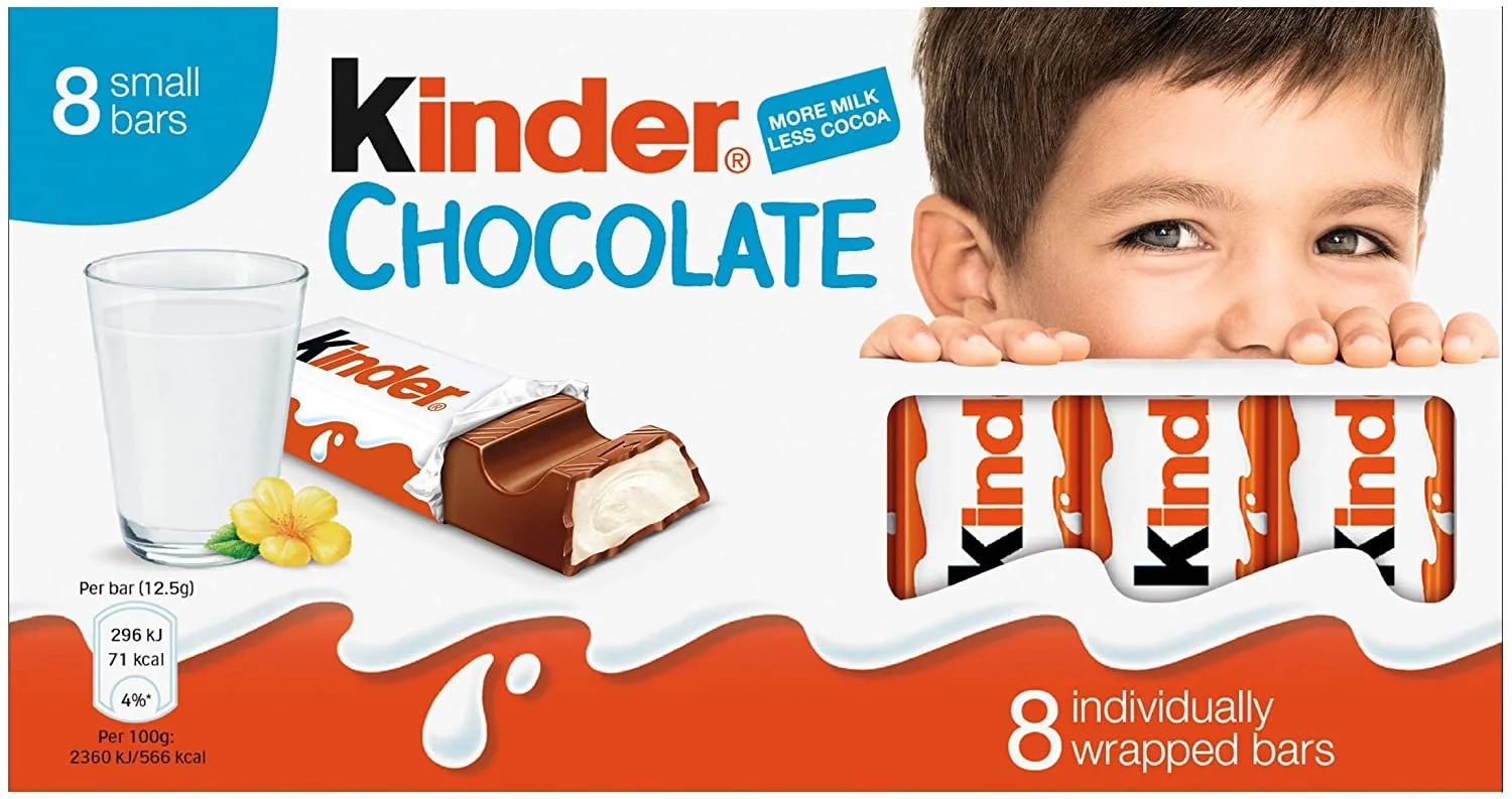 - Kinder Chocolate different bar sizes are perfect for little and bigger hands