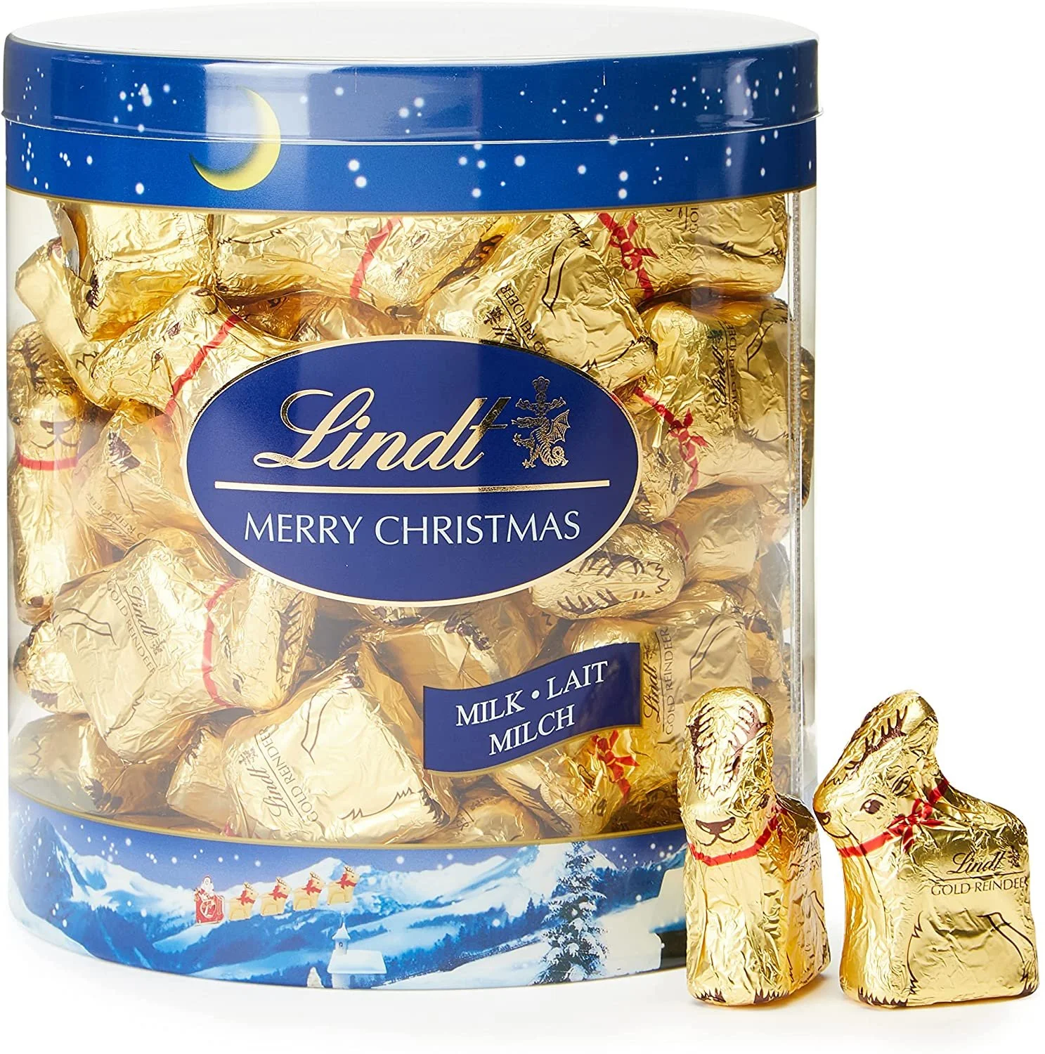 Lindt Milk Novelty Reindeer Chocolate Tub,700 G £127.40 About this itemLindt Chocolate Novelty Reindeer Tub - 67 milk chocolate hollow reindeer figurines perfect for filling stockings this season.Each delicious Lindt milk chocolate figure is wrapped with the magical gold reindeer design.Lindt Master Chocolatiers use their 165 years of dedication and expertise in chocolate to make Christmas specialThe ideal chocolate stocking fillers for all children, even grown-up ones›See more product detailsFlavourChocolateItem weight700 GramsBrandLindtPackage weight0.84 KilogramsFormatMilk Shop › Lindt Milk Novelty Reindeer Chocolate Tub,700 G Purchase Added! About this itemLindt Chocolate Novelty Reindeer Tub - 67 milk chocolate hollow reindeer figurines perfect for filling stockings this season.Each delicious Lindt milk chocolate figure is wrapped with the magical gold reindeer design.Lindt Master Chocolatiers use their 165 years of dedication and expertise in chocolate to make Christmas specialThe ideal chocolate stocking fillers for all children, even grown-up ones›See more product detailsFlavourChocolateItem weight700 GramsBrandLindtPackage weight0.84 KilogramsFormatMilk Reviews Reviewer Name Review Date Star Rating Description Posted on Etsy Product Show More You Might Also Like Heidel Christmas Time Praline Bars 75 g (Pack of 6) £49.80 Windel Chocolate Santas 108 g £14.60 Hotel Chocolat - The Classic Christmas Sleekster £122.60 Mars, Snickers, Twix & More Assorted Fun Size Chocolate Bars, Christmas Chocolate Gift, 1.4kg, Stocking Fillers, 71 Bars £50.00 Cadbury Dairy Milk Oreo 120 g £4.80