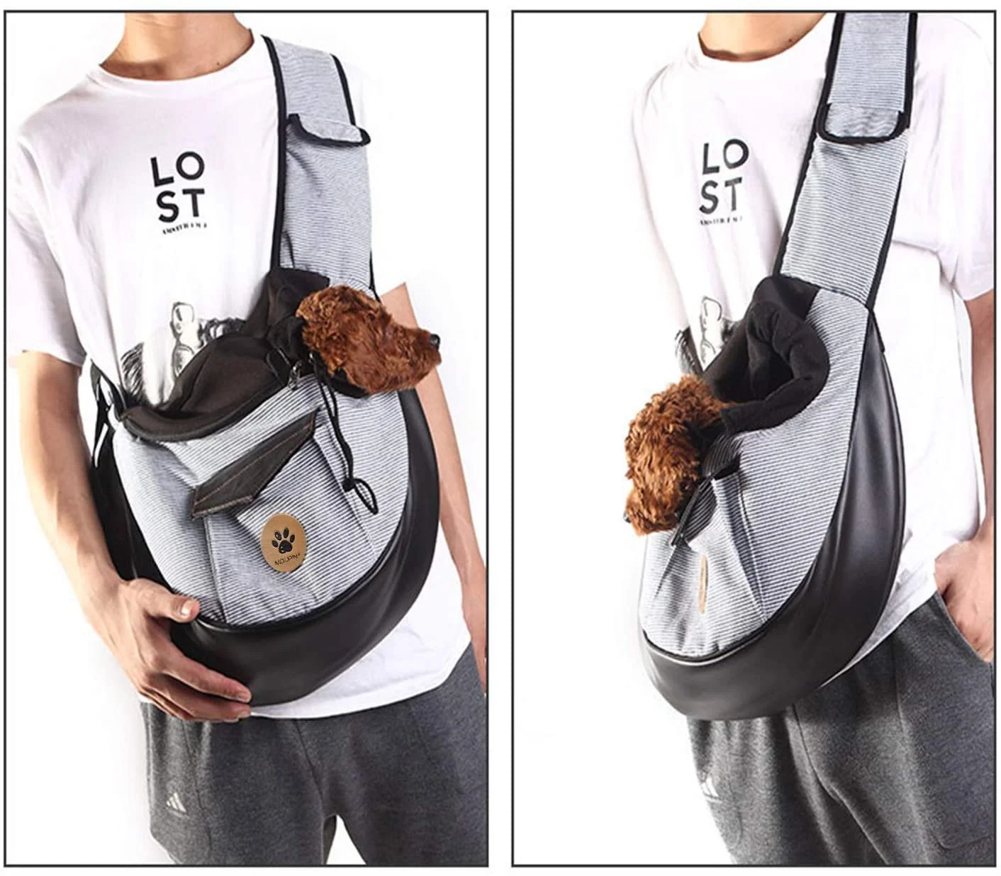 Cadoca Dog Backpack Up to 12kg High Wearing Comfort Short Leash Inside Adjustable Straps Pet Carrier Bag Cat Backpack Black Grey Beige