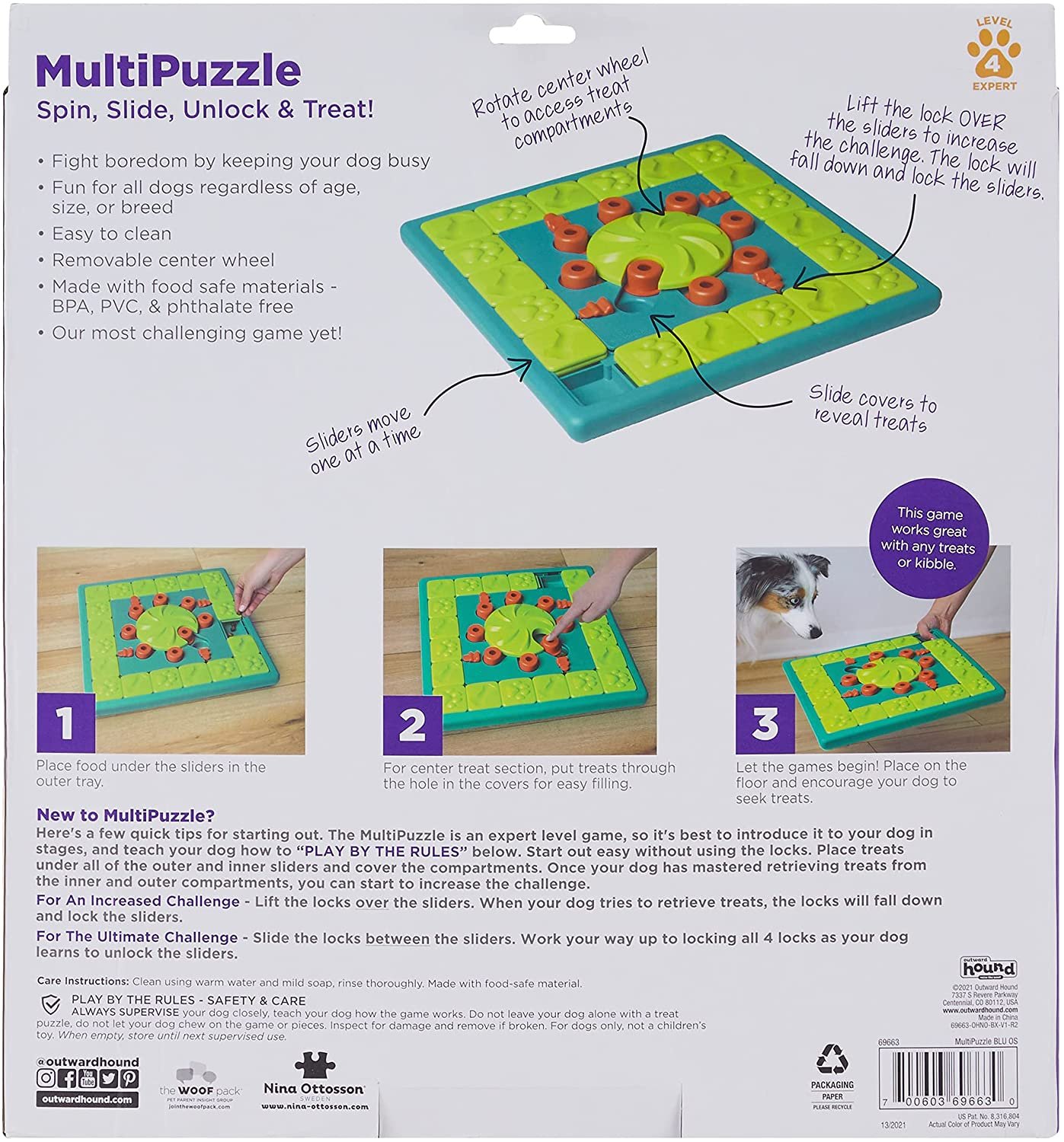 BPA, PVC & PHTHALATE-FREE: Nina Ottosson by Outward Hound interactive treat dog puzzles are designed with your pet's health in mind from food safe materials that you can trust with your dog. Easy to clean with warm water and soap between uses