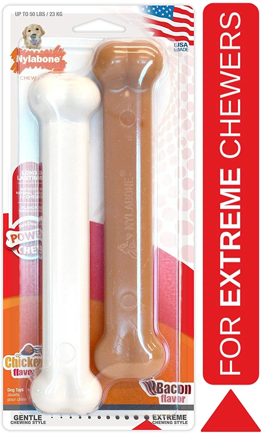 Nylabone 2 x Dura Chew Extreme Tough Dog Chew Toy Bones, 1 Bacon & 1 Chicken, Medium, For Dogs Up To 16 kg