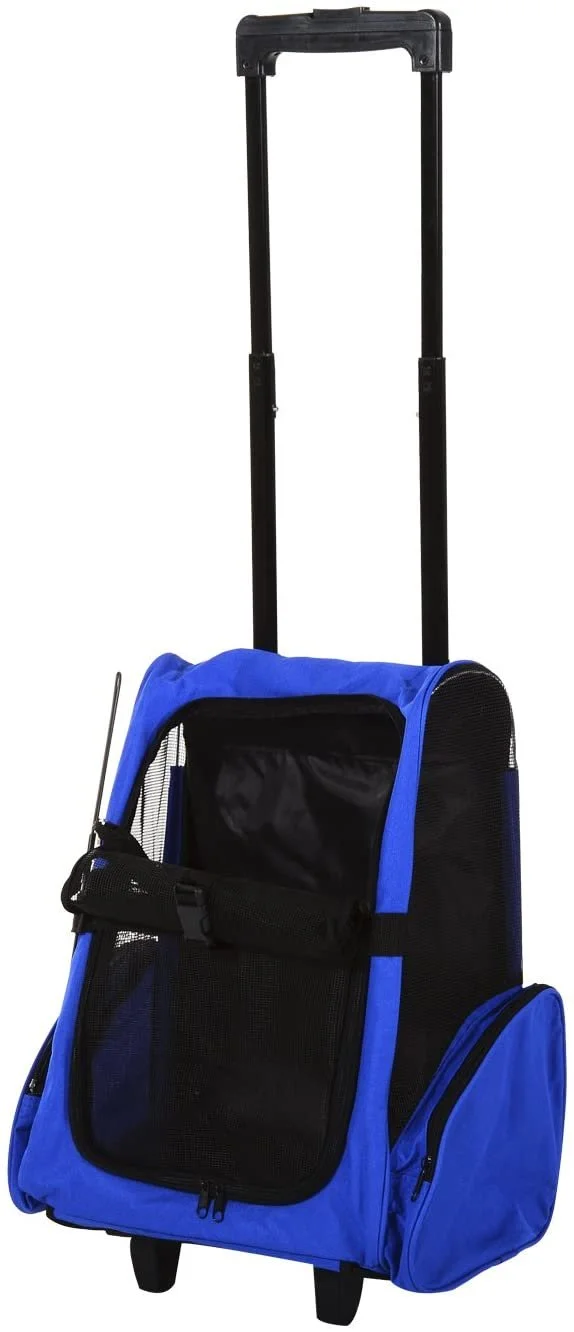 PawHut Pet Travel Backpack Bag Cat Puppy Dog Carrier w/ Trolley and Telescopic Handle Portable Stroller Wheel Luggage Bag (Red)