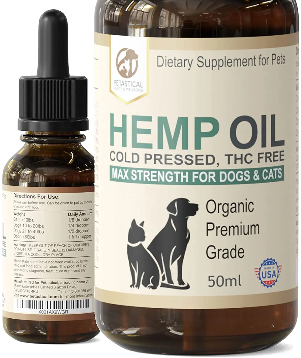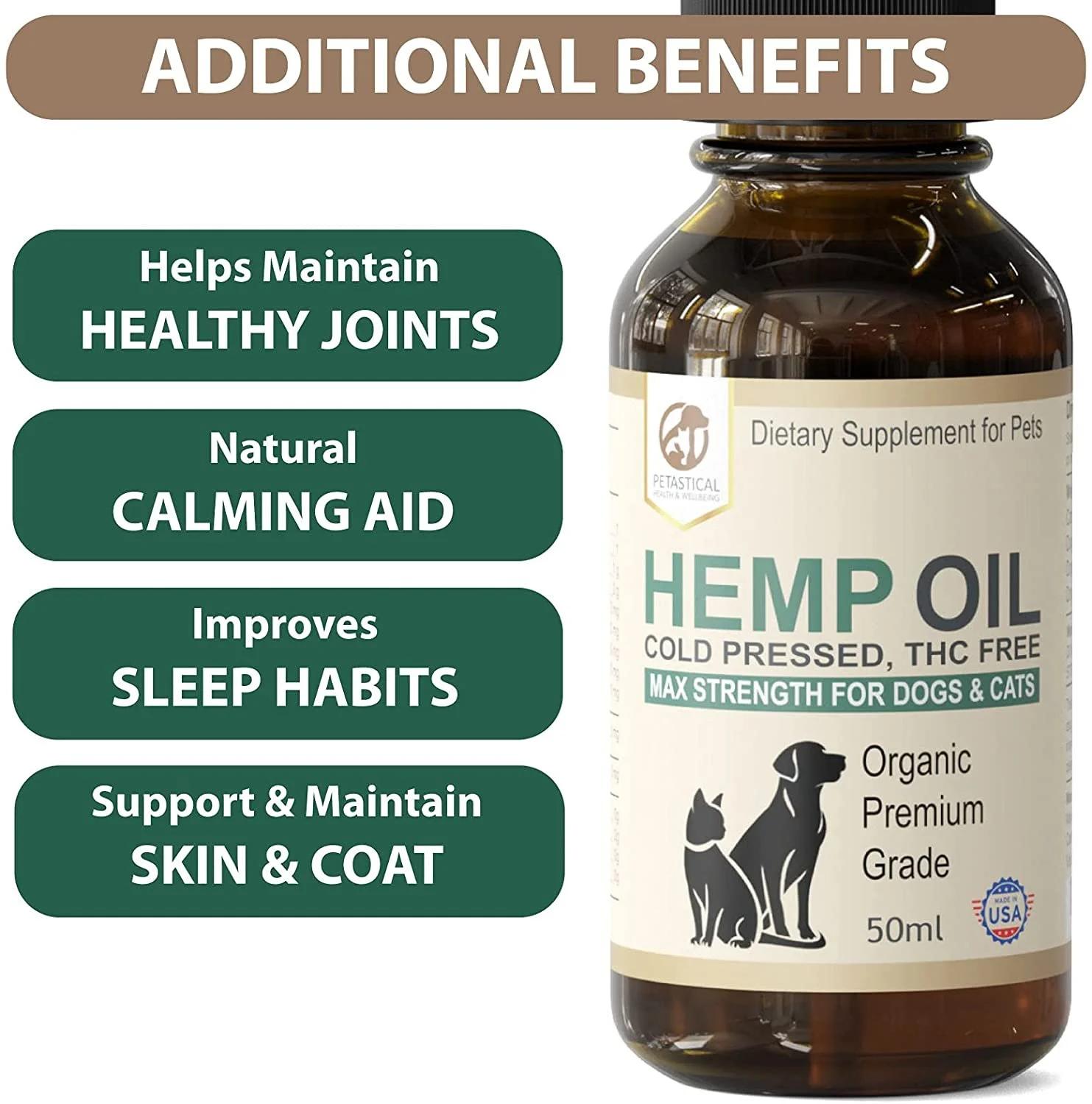 - ADDITIONAL BENEFITS OF HEMP SEED OIL FOR PETS - Rich in Omega 3, 6 and 9 which can aid sleep, stabilise mood, improve skin and coat, support joint movement. Works well with Petastical Joint Supplements or Petastical Salmon Oil.