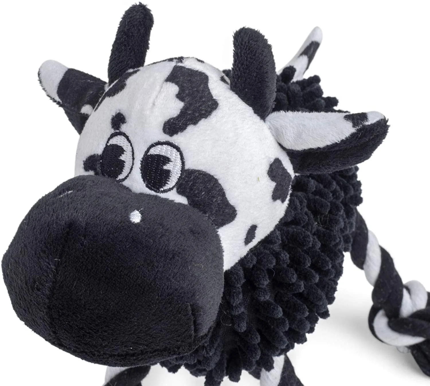- Soft textured plush toy with rope cord legs