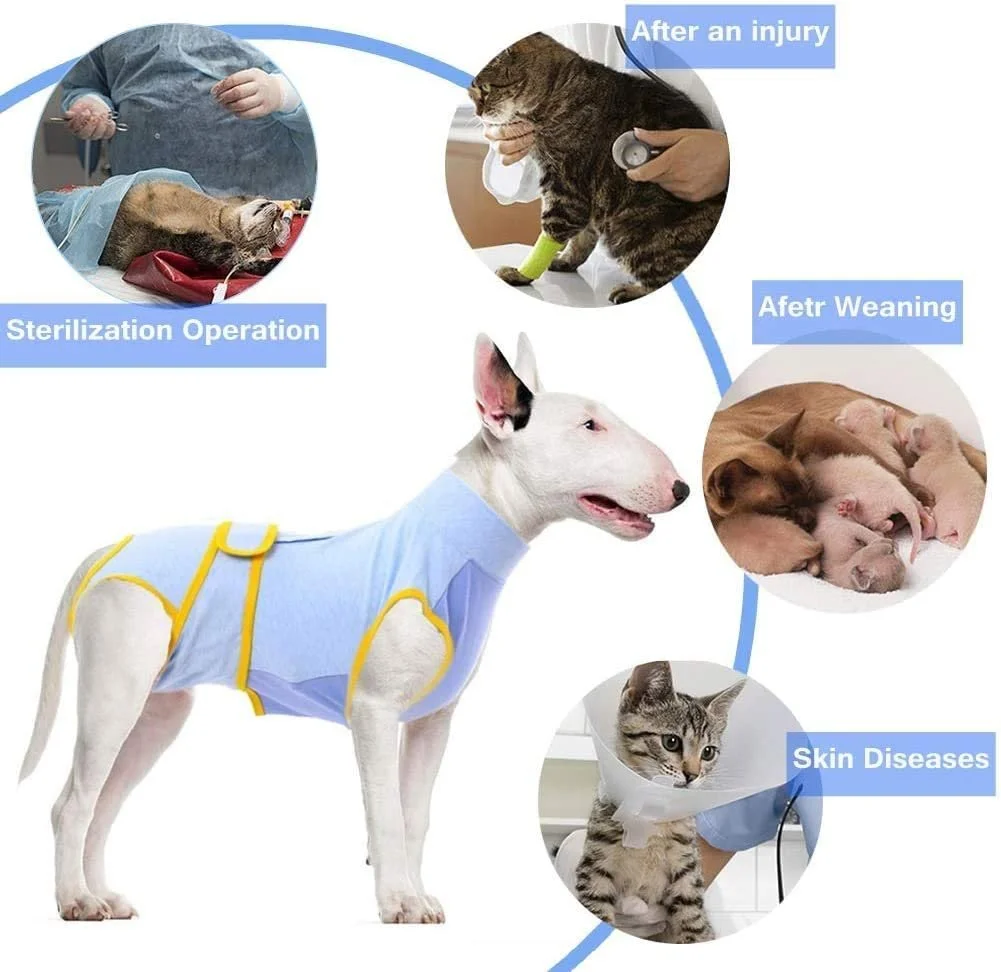 - ăVETERINARIAN RECOMMENDă Do you need to stop your pet from licking or scratching his wound? Is your pet still tolerating the hard E-collar? Our dog surgery recovery suit is designed to protect pet's wounds, spots, incision, bandages, hotspots, skin herpes when it is spayed, neutered or has an allergy flare up, and to keep pet calm & basically stress-free. At the same time, our dog surgical recovery suit also perfectly isolates the affected area from the pathogens, thus avoiding wound infection.