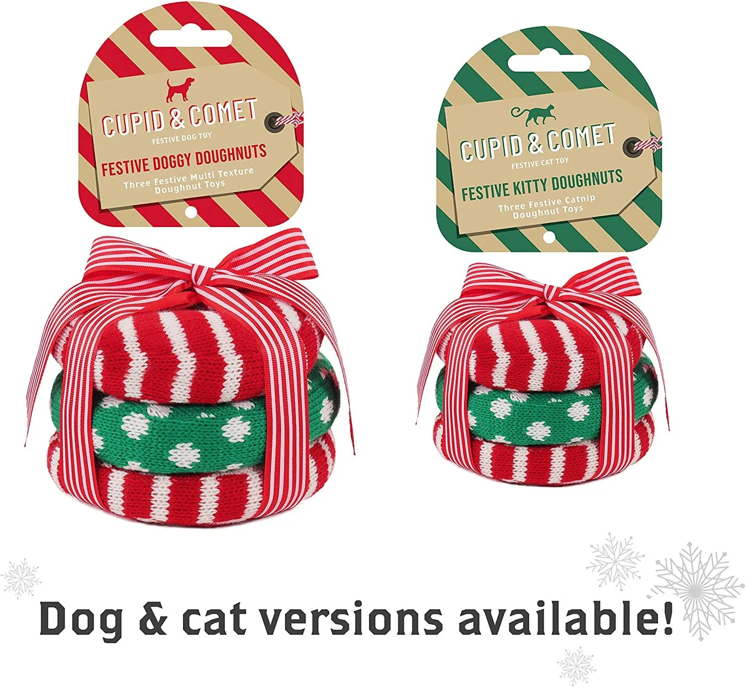 Rosewood Festive Doggy Doughtnut Dog Toys, Interactive Dog Toys, Including: 1 x Squeaky Doughnut Dog Toy, 1 x Rope Doughnut Dog Toy and 1 x Crinkle Doughnut Dog Toy, 14cm Diameter