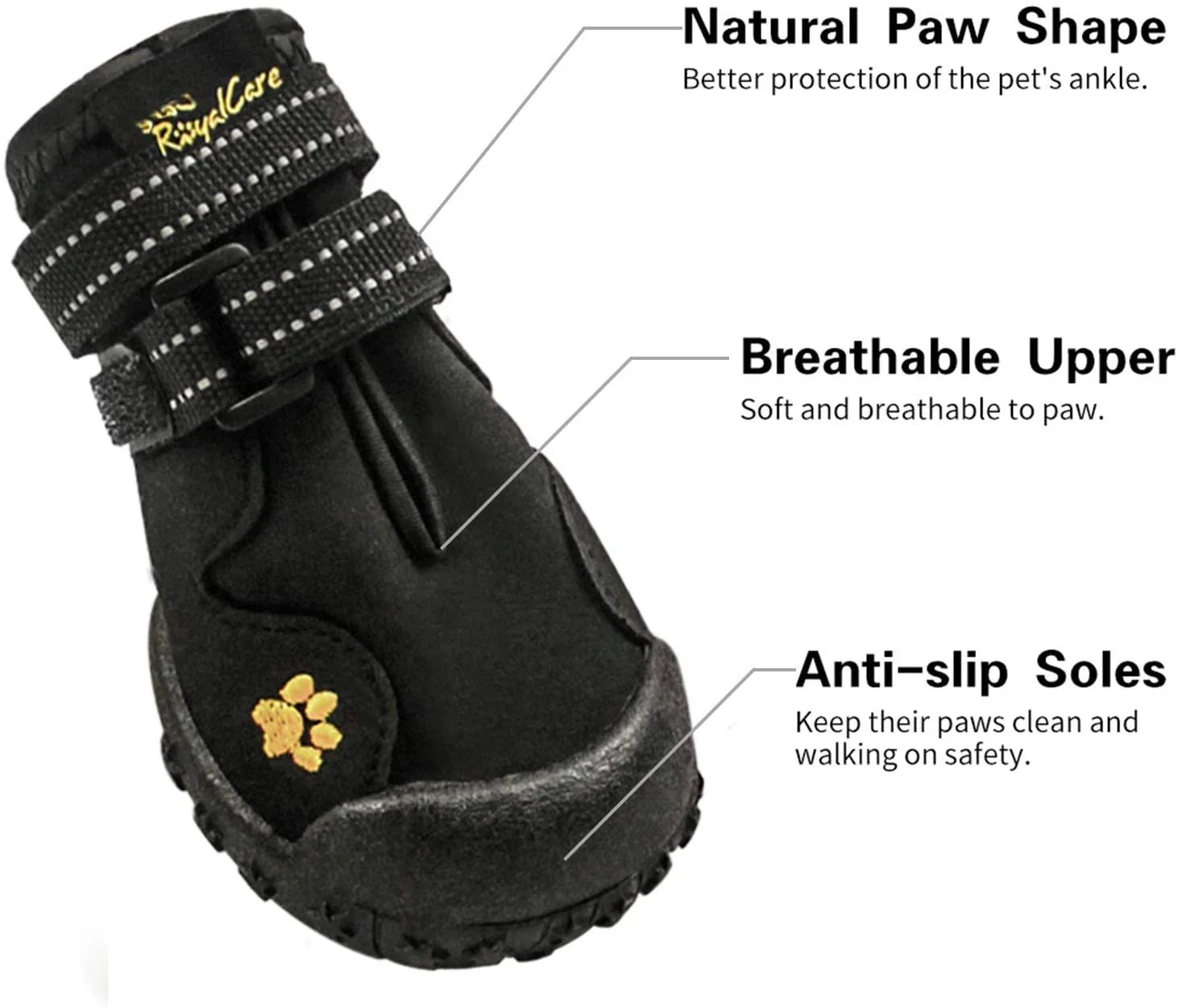 Royalcare Protective Dog Boots, Set of 4 Waterproof Dog Shoes with Wear-resistant and Rugged Anti-Slip Sole Suitable for Small Dogs - Black (Updated 3# (1.96" x2.19 ))