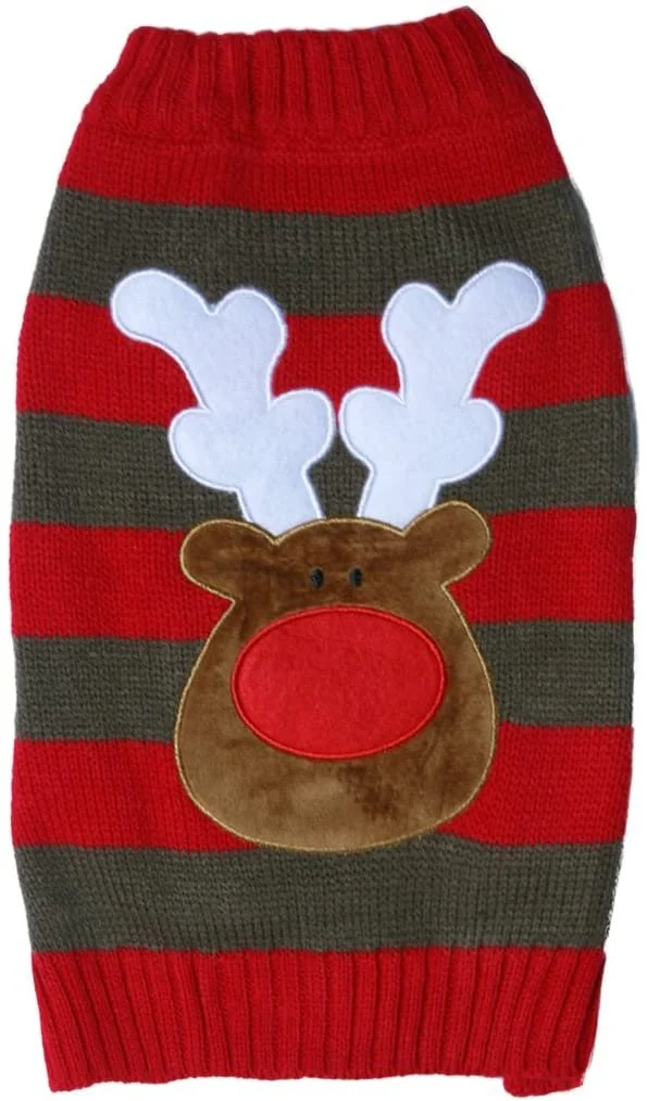 Stripey Rudolph Christmas Sweater For Dogs (Medium)