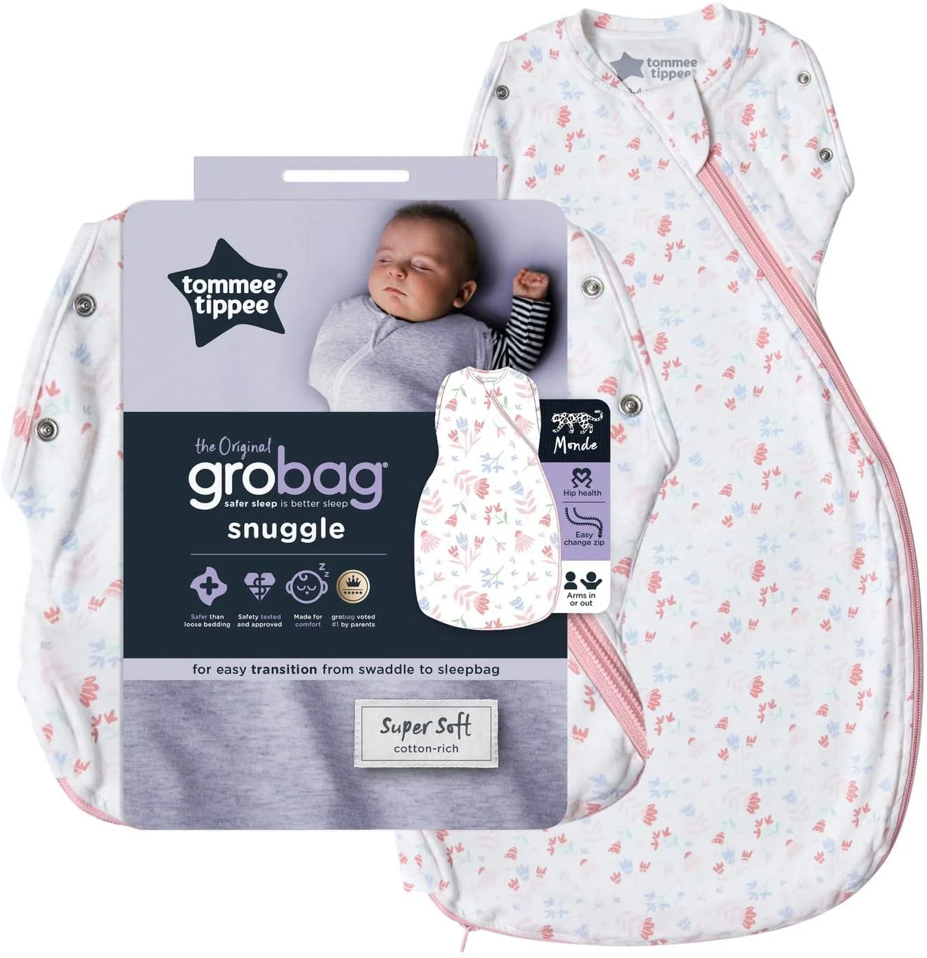 Tommee Tippee Baby Sleep Bag, The Original Grobag Snuggle, Soft Cotton-Rich Fabric, 3-9m, 1.0 Tog, Pretty Petals