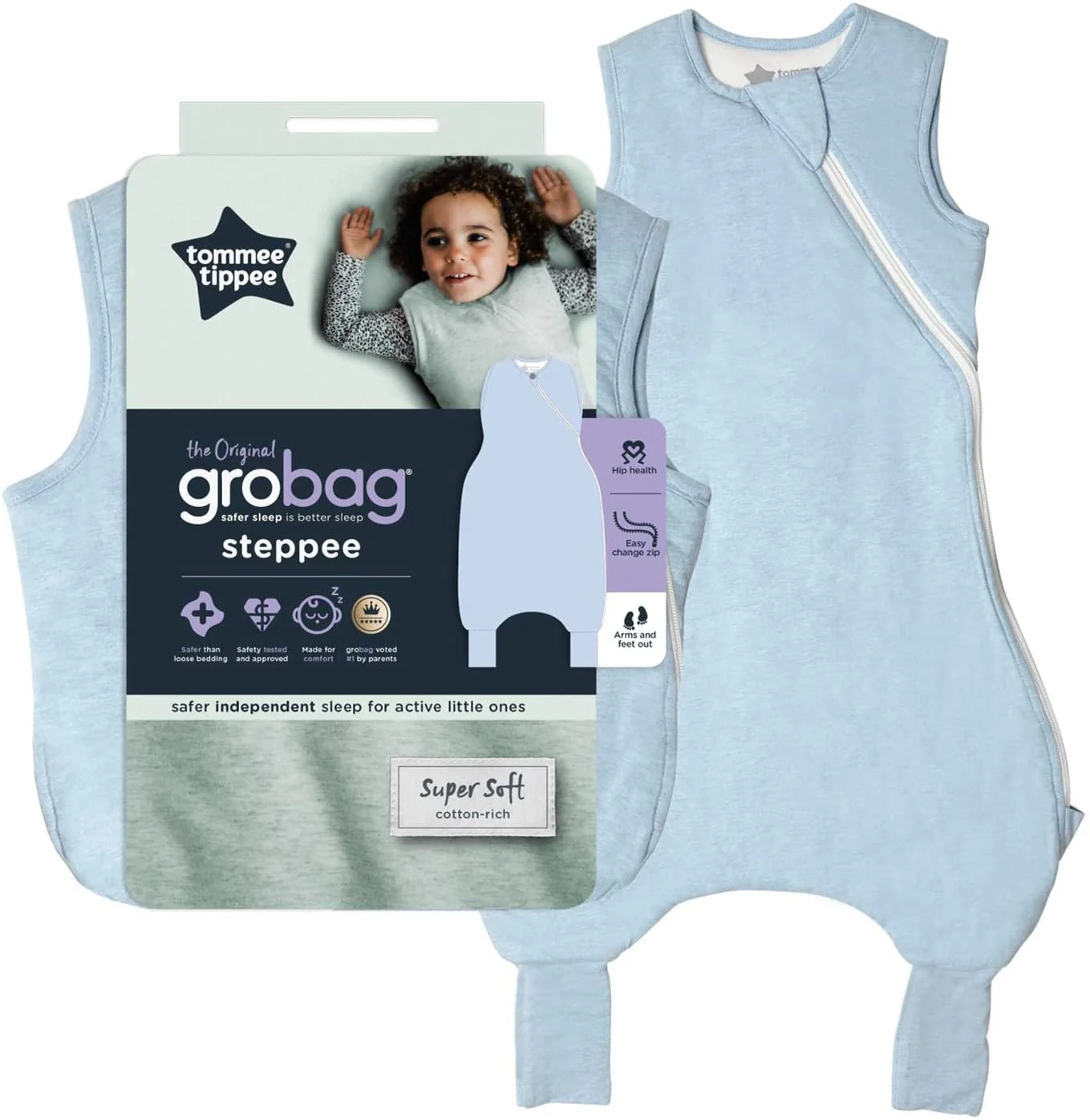 Tommee Tippee Baby Sleep Bag with Legs, The Original Grobag Steppee, Baby Romper Suit, Soft Cotton-Rich Fabric, 18-36m, 2.5 Tog, Blue Marl