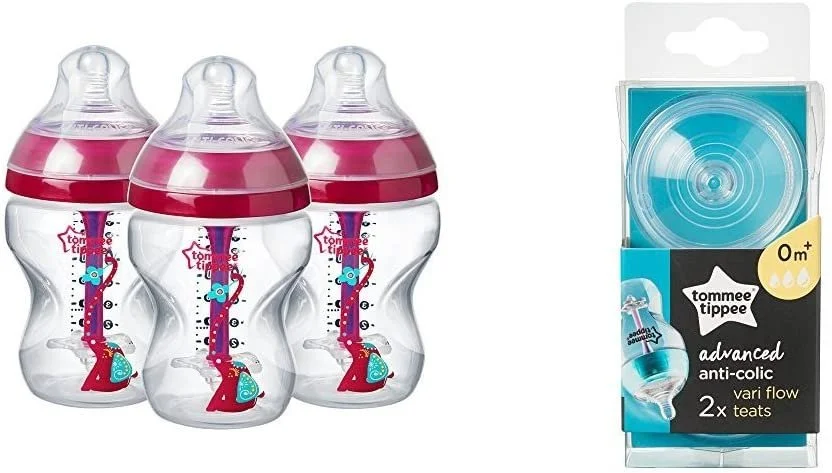 Tommee Tippee Decorated Advanced Anti-Colic Bottles, 260 ml with Advanced Anti-Colic Variable Flow Teats, 2 Count