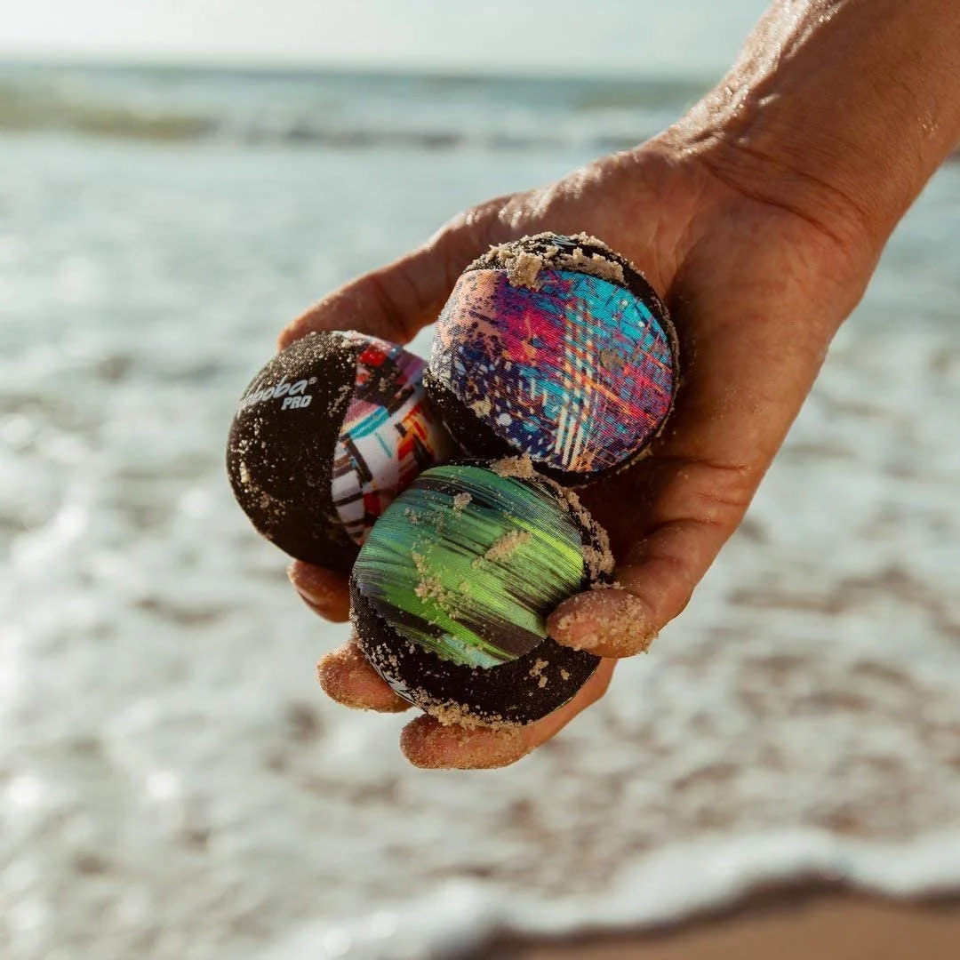 - WATER-PROOF - Thanks to our palm sized 3 layer design with a lycra fabric outer and gel core, the Pro can float as well as bounce on water making it easy to retrieve during play