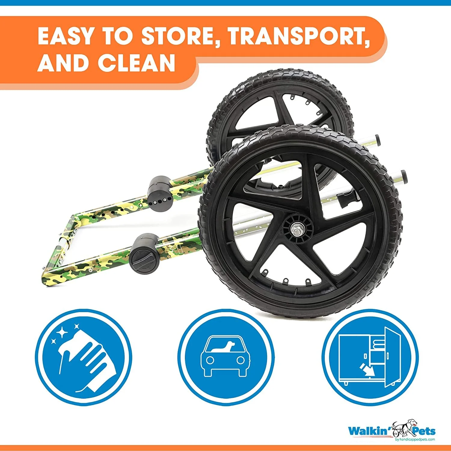 EASY TO STORE, TRANSPORT, AND CLEAN - Our Medium to Large size dog wheelchairs fold flat making it easy to load into your car when your family travels or to conveniently store when not in use. Additionally, all of the pet wheelchair parts are washable including the foam/rubber wheels making it easy to clean.