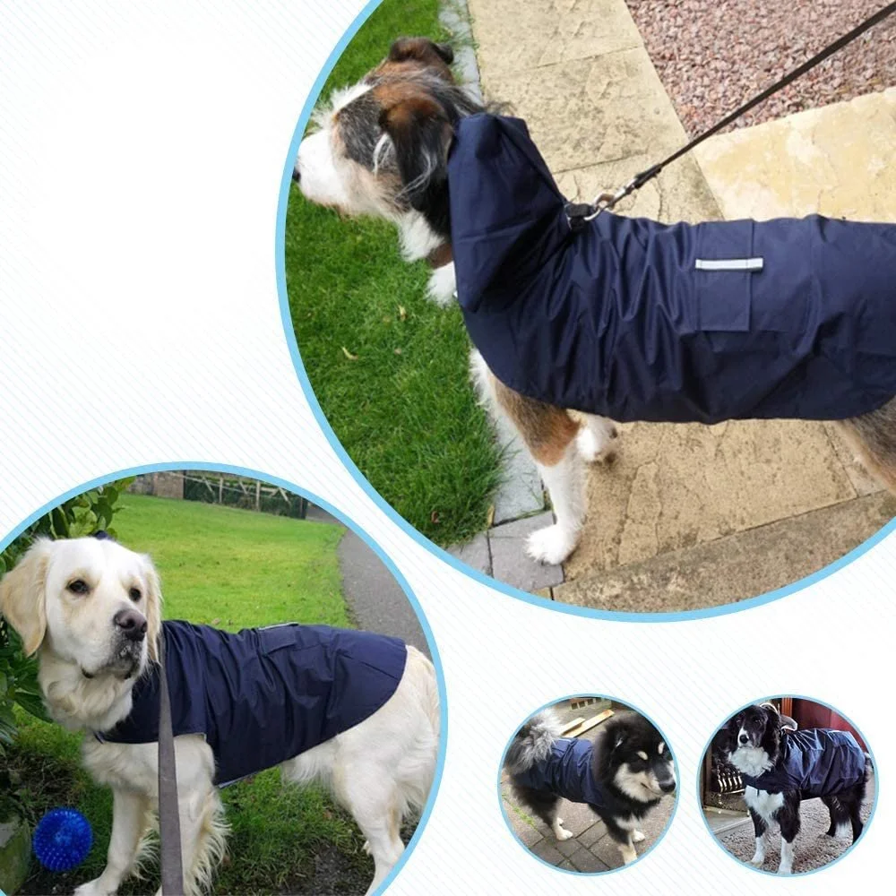 - Adjustable Strip & Flap Pocket Design - Neck and chest strip design makes the raincoat easy to put on and take off. Easy adjustment for a better fit for your pet dog. Each Rain jacket comes with a pocket for easy storage of small items like dog treats or poo bags.