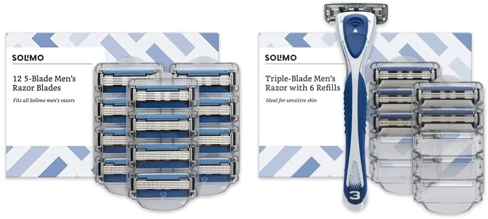 SOLIMO Male 5 blade system handle with 1 cartridge Double Coated Blade Edge for a close, comfortable shave Anti-clog Cartridge to quickly rinse clean Accublade Trimmer for shaving goatee, sideburns and under nose Blades made in USA from imported steel. Lubricating strip contains: Vitamin E, Cocoa Butter, Shea Butter, Jojoba Oil, Grape Seed Oil Suitable for sensitive skin Tested under dermatological control MotionSphere Technology for a close shave Cartridge pivots 12 degrees to the right and 12 degrees to the left Use with shaving gel or foam to soften the hairs before shaving for a smoother finish. Avoid touching the blades. After shaving do not wipe the blades, simply rinse and shake off excess water. For optimal performance store product in a dry environment between use Keep out of reach of children Avoid touching or wiping the blades as this may impair their performance