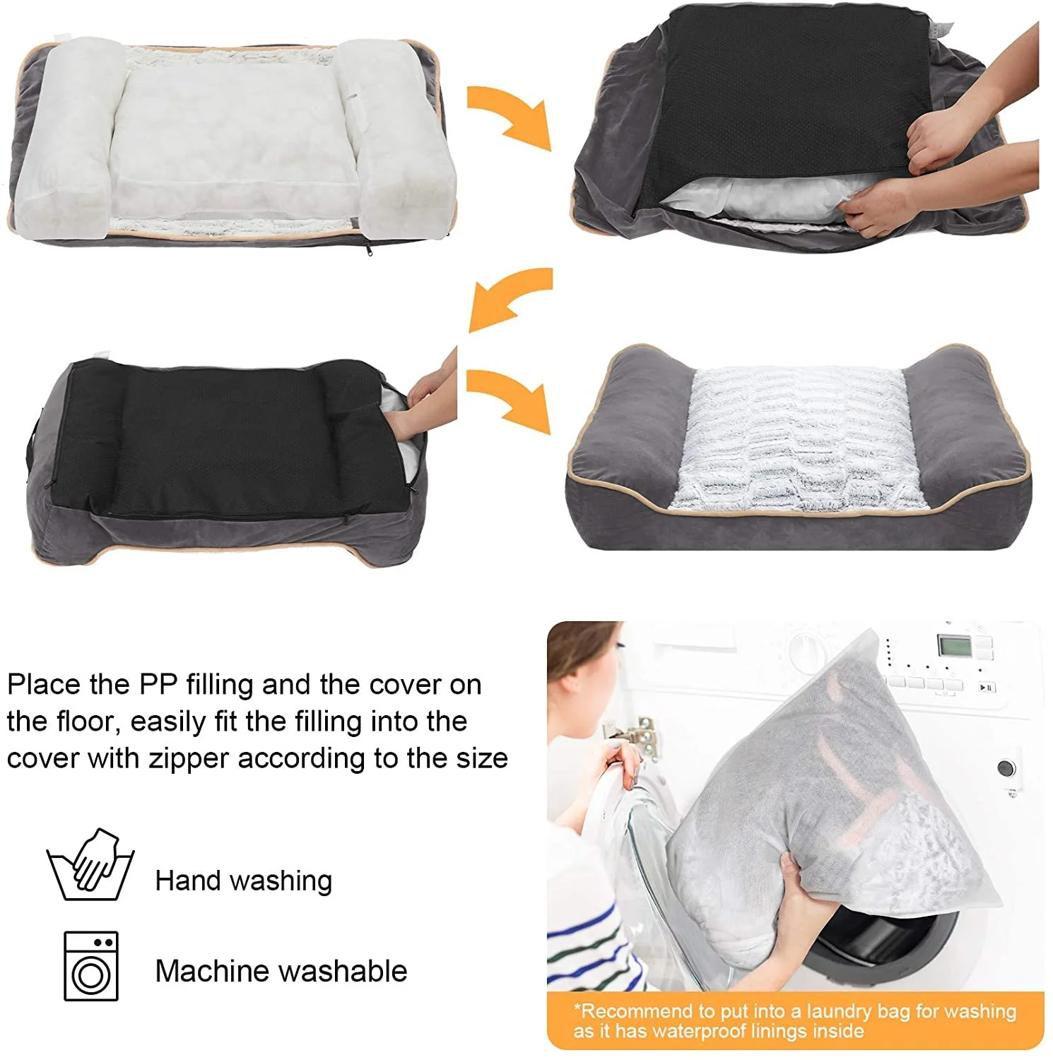 - Luxurious suede fabric Surface: Dog bed composed of luxurious self warming soft suede fabric surface and high quality overstuffed PP cotton filling, provide your pet a good support and better relax when sleeping, let your pet joint and muscle pain relief, avoid orthopedic problems