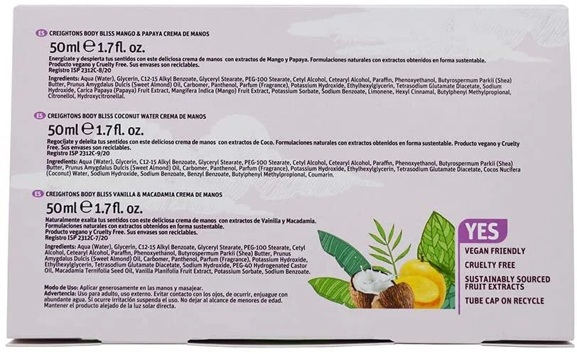 Body Bliss Vanilla & Macadamia Hand Companions (2 x 500ml) £39.20 About this itemSpoil your hands with our splendidly sweet hand wash and hand lotion duoThe ultimate everyday pampering indulgence immersed in a rich Vanilla & Macadamia FragranceItem formLotionBrandBody BlissSkin typeNormalScentVanillaItem volume500 Millilitres Shop › Body Bliss Vanilla & Macadamia Hand Companions (2 x 500ml) Purchase Added! About this itemSpoil your hands with our splendidly sweet hand wash and hand lotion duoThe ultimate everyday pampering indulgence immersed in a rich Vanilla & Macadamia FragranceItem formLotionBrandBody BlissSkin typeNormalScentVanillaItem volume500 Millilitres Reviews Reviewer Name Review Date Star Rating Description Posted on Etsy Product Show More You Might Also Like Women's Solitaire Collection £191.20 The Body Shop Hand Cream 30 ml, Strawberry £24.60 Vintage & Co Patterns and Petals Hand Cream in Tin, 100 ml £34.40 Cath Kidston Beauty Freston Cassis & Rose Cosmetic Pouch (30ml Hand Cream & 15ml Hand Sanitisers) £57.80 FRIENDS TV Show Hand Balm Mango and Ylang Ylang £29.40