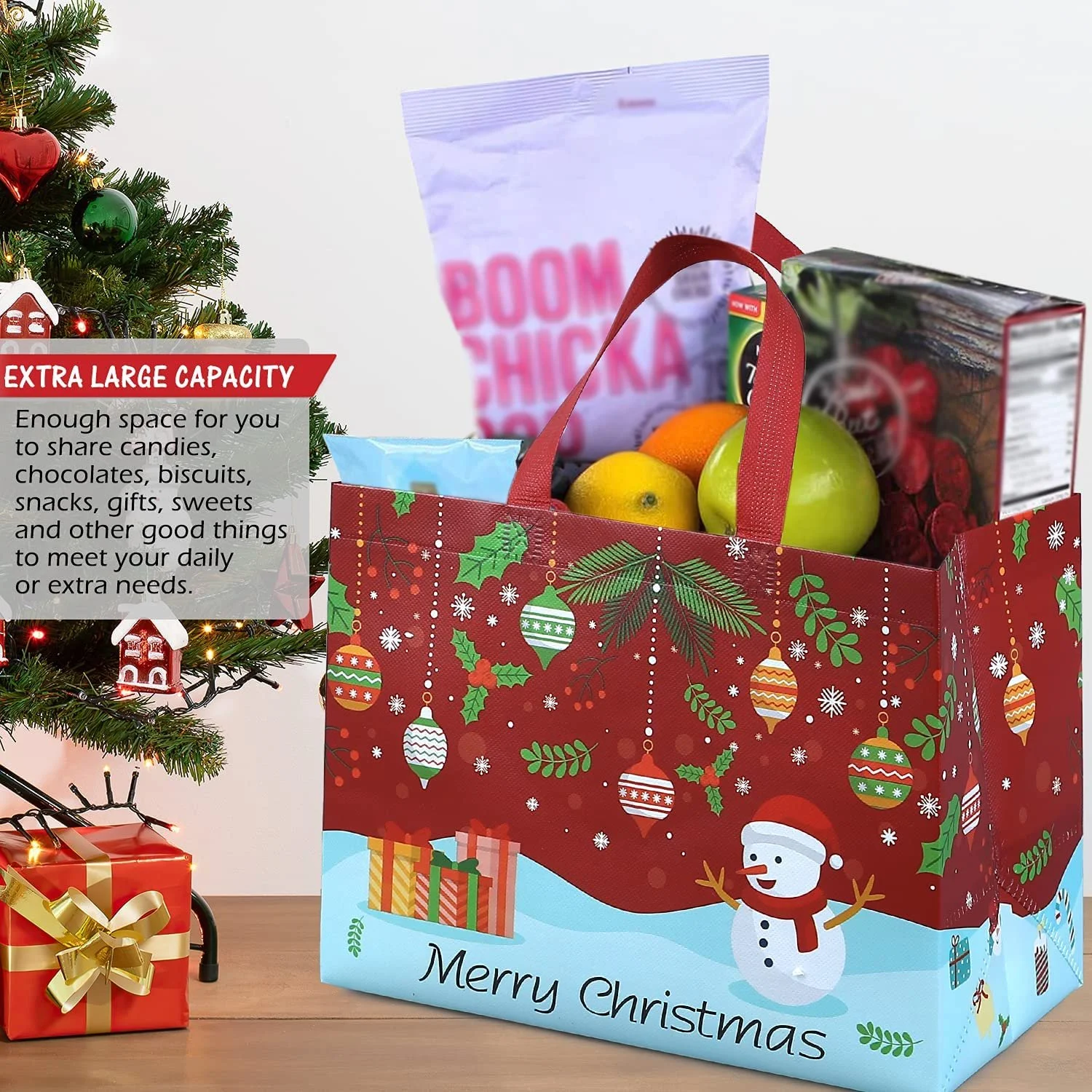 - DECENT QUALITY MATERIAL: Made of high-quality non-woven fabric. The Christmas bags are sturdy and durable enough, and can be used to carry gifts to reduce the risk of tearing. You can replace your smelly plastic bags with these super stylish tote bags.