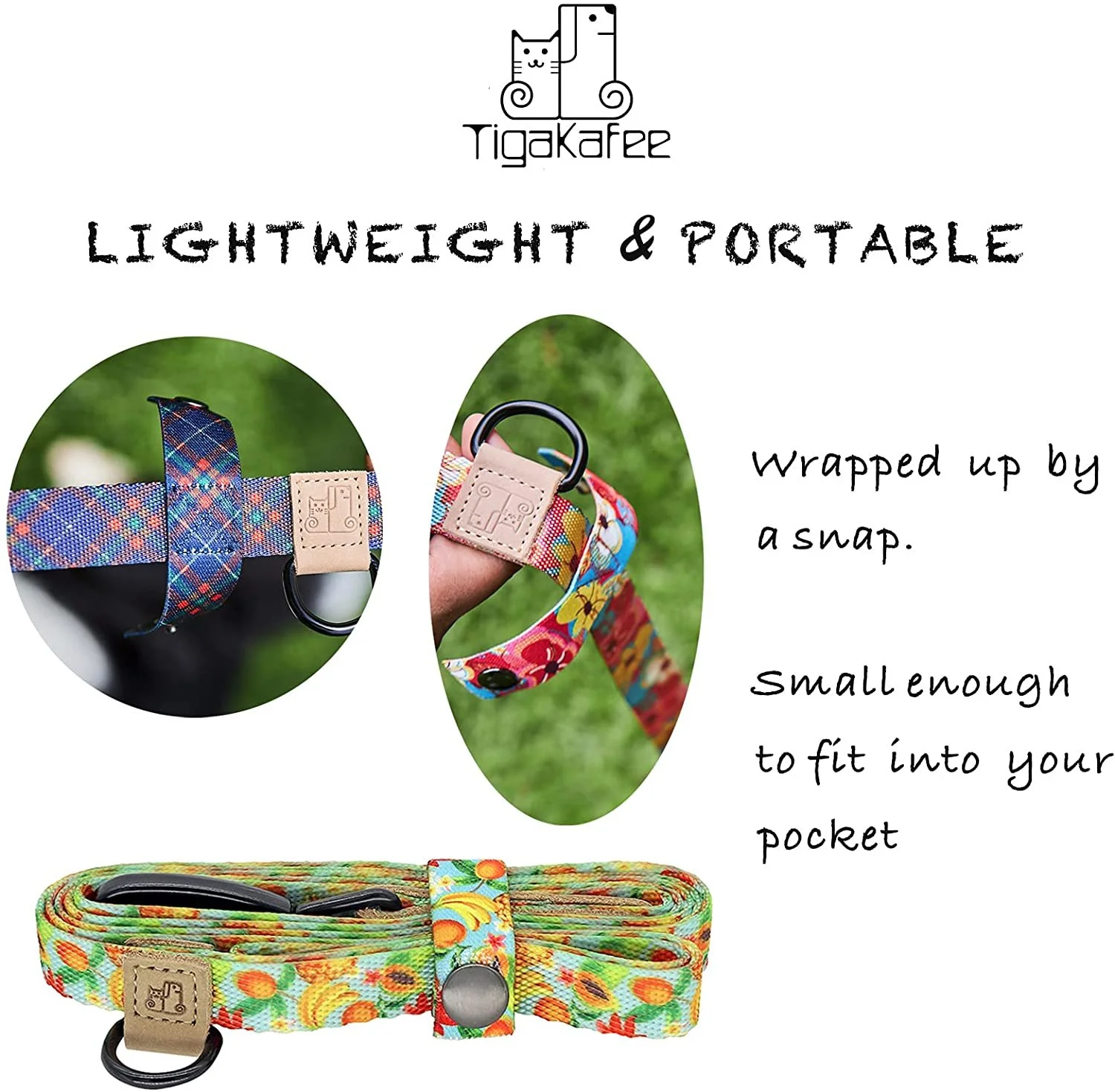 - LIGHTWEIGHT & PORTABLE - The leash can easily be wrapped up by a snap and be small enough to fit into your pocket. While the webbing is strong, it is still lightweight, perfect for daily walk or hiking.