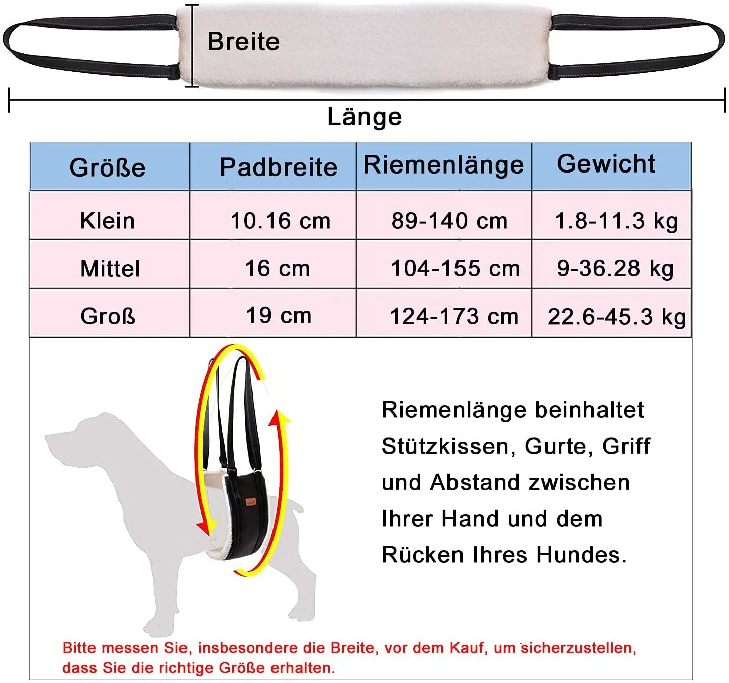 - Soft and comfortable padding: the dog back walking aid consists of a large amount of synthetic sheepskin pads, which are strong enough to carry the weight of your dog. The filling is very fluffy, which makes your dog soft and comfortable when wearing and does not scratch your dog's stomach.