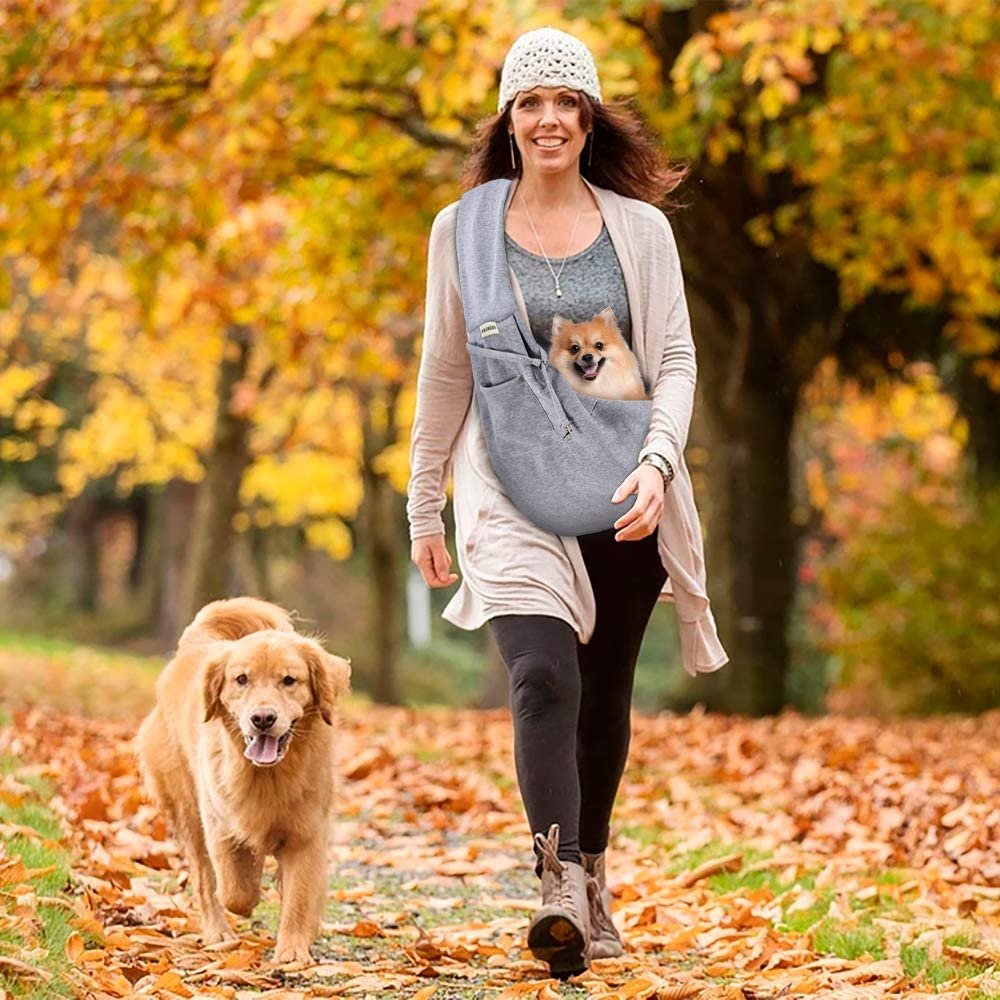 - Hands Free Carrier: Sometimes little puppies tire quickly on walks, or perhaps you just want to keep them close! Our dog sling carrier is a hands free carrier that allows you to take your little pet along with you while still being able to use your hands!