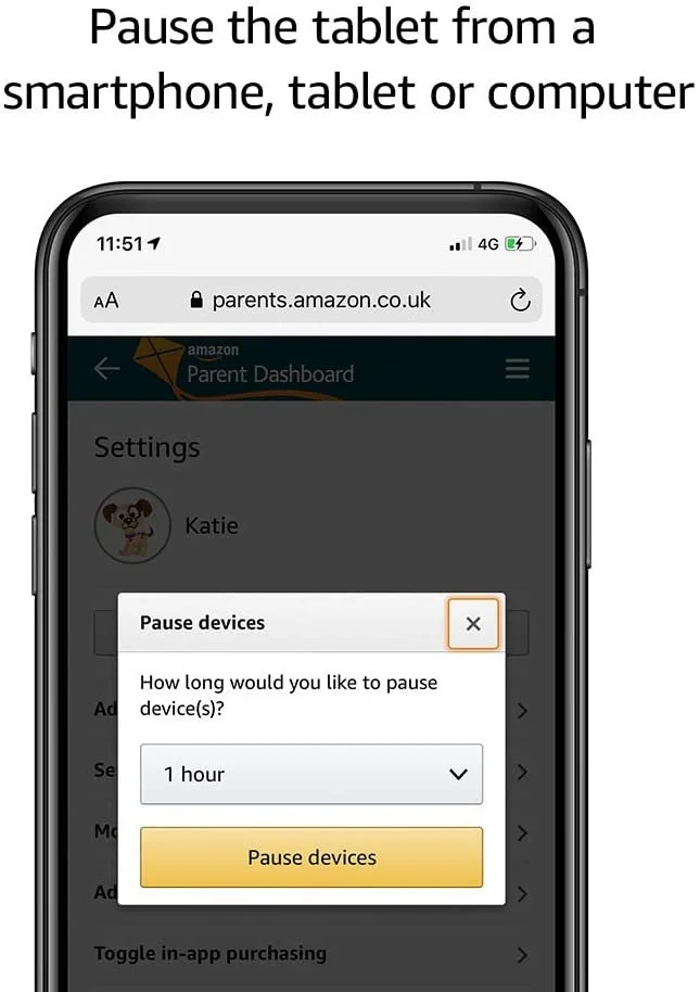 - Set time limits and educational goals remotely from your smartphone using Amazon Parent Dashboard, or the Kids tablet.