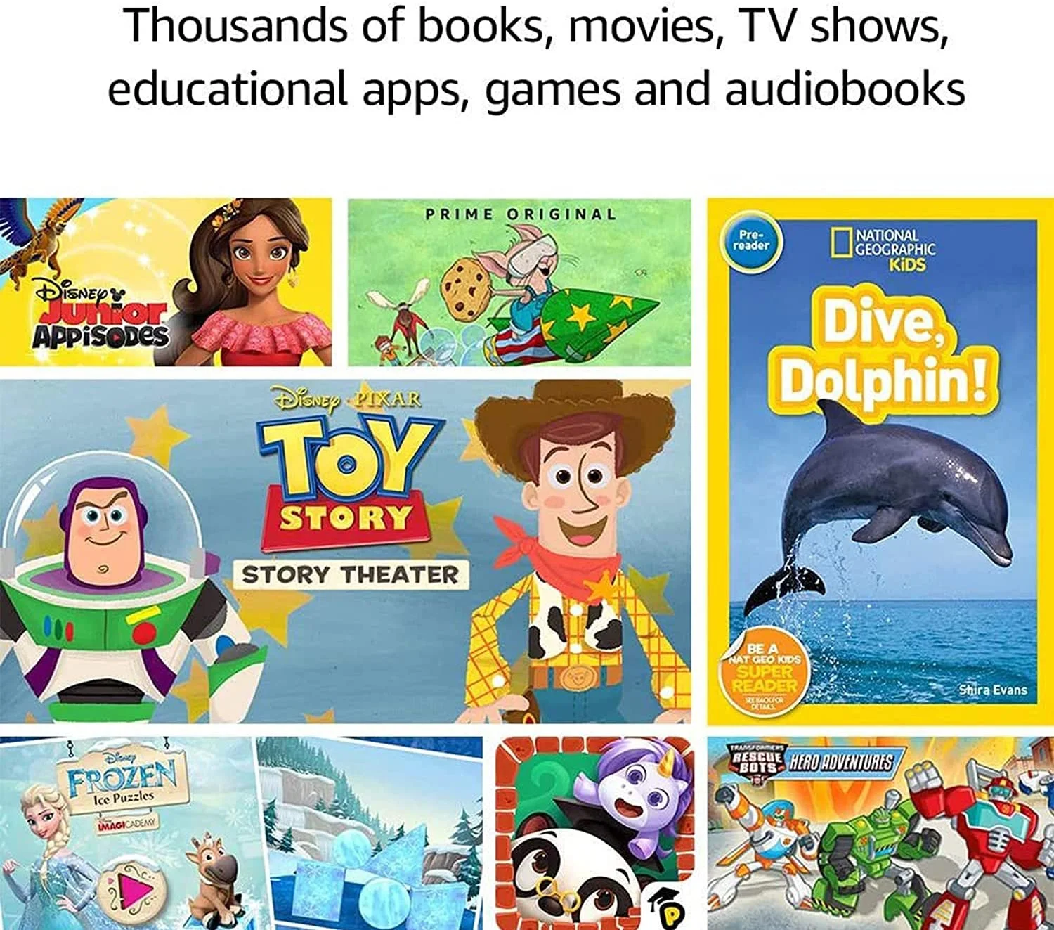 - Includes a 1-year subscription to Amazon Kids+ giving kids access to thousands of popular apps, games, videos, books and Audible audiobooks, including content from Disney, Nickelodeon and Sesame Street.