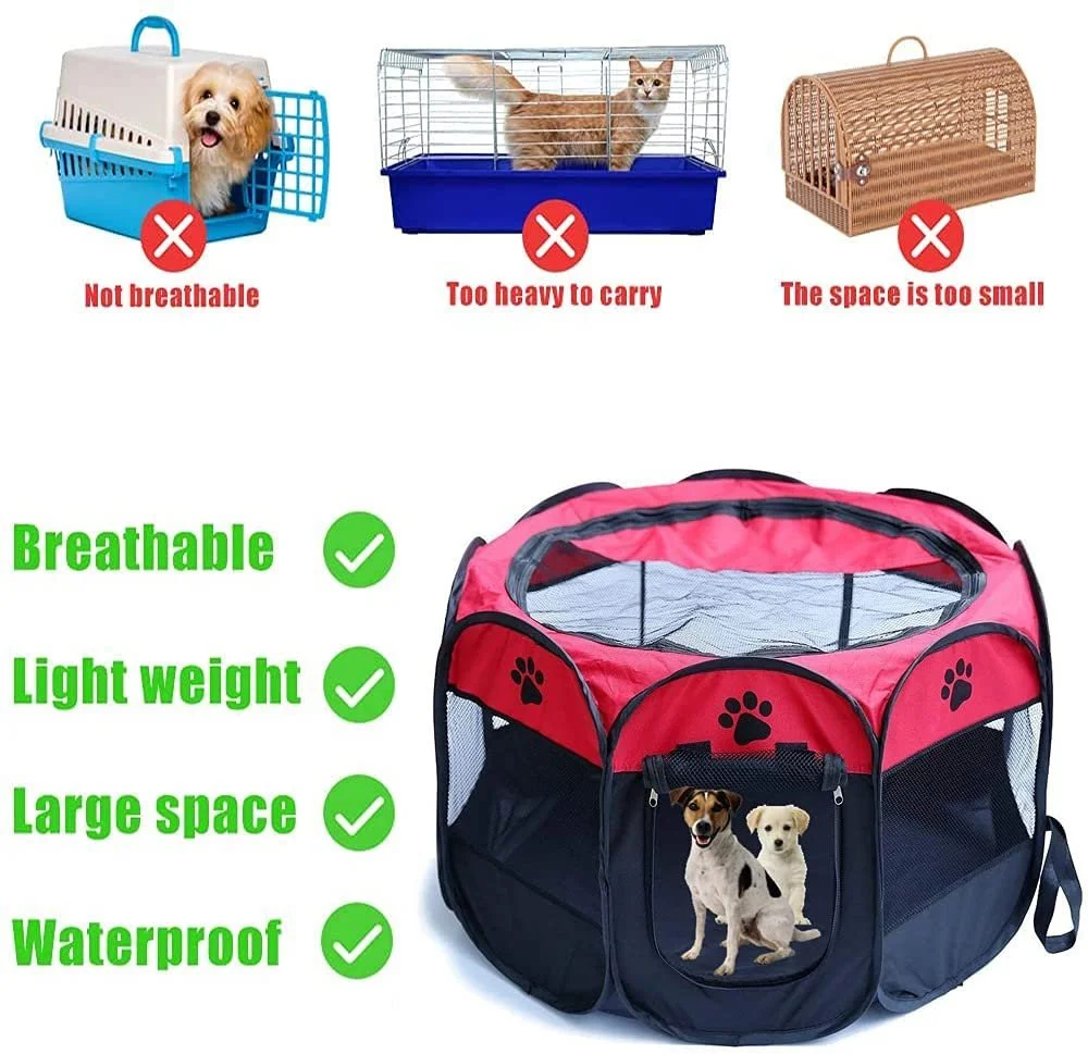 - Foldable Puppy Playpen: The lightweight and sturdy pet playpen provides a safe and comfortable play space for your pets both indoors and outdoors. The portable and lightweight design makes it a perfect choice for family, travel and camping. The bulky crates are a thing of the past!