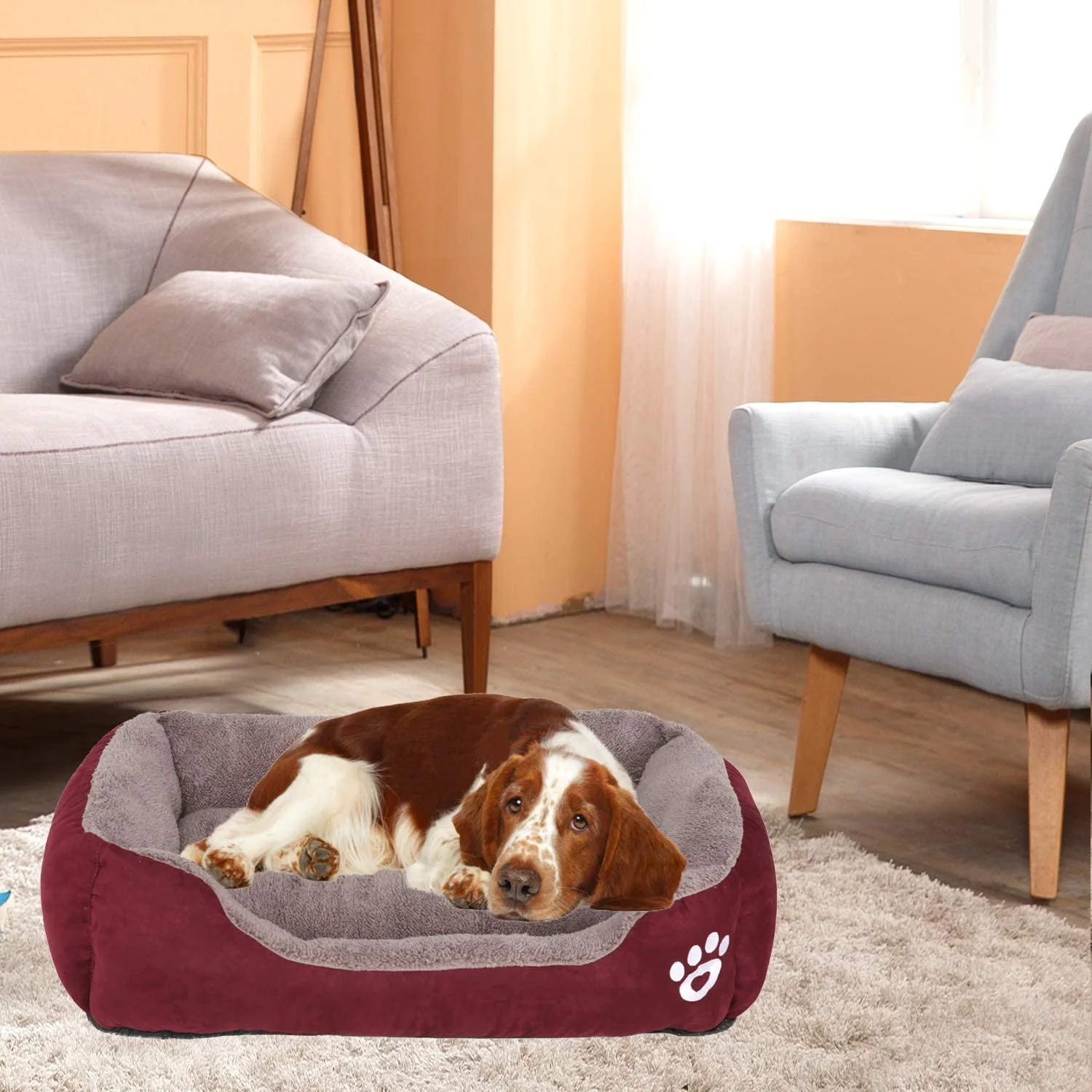 - Soft and Comfortable Sides: The elaborate sides provide support for the pet's head and neck, give pets a sense of security.No matter the displacement of the filler while lying in dog bed.
