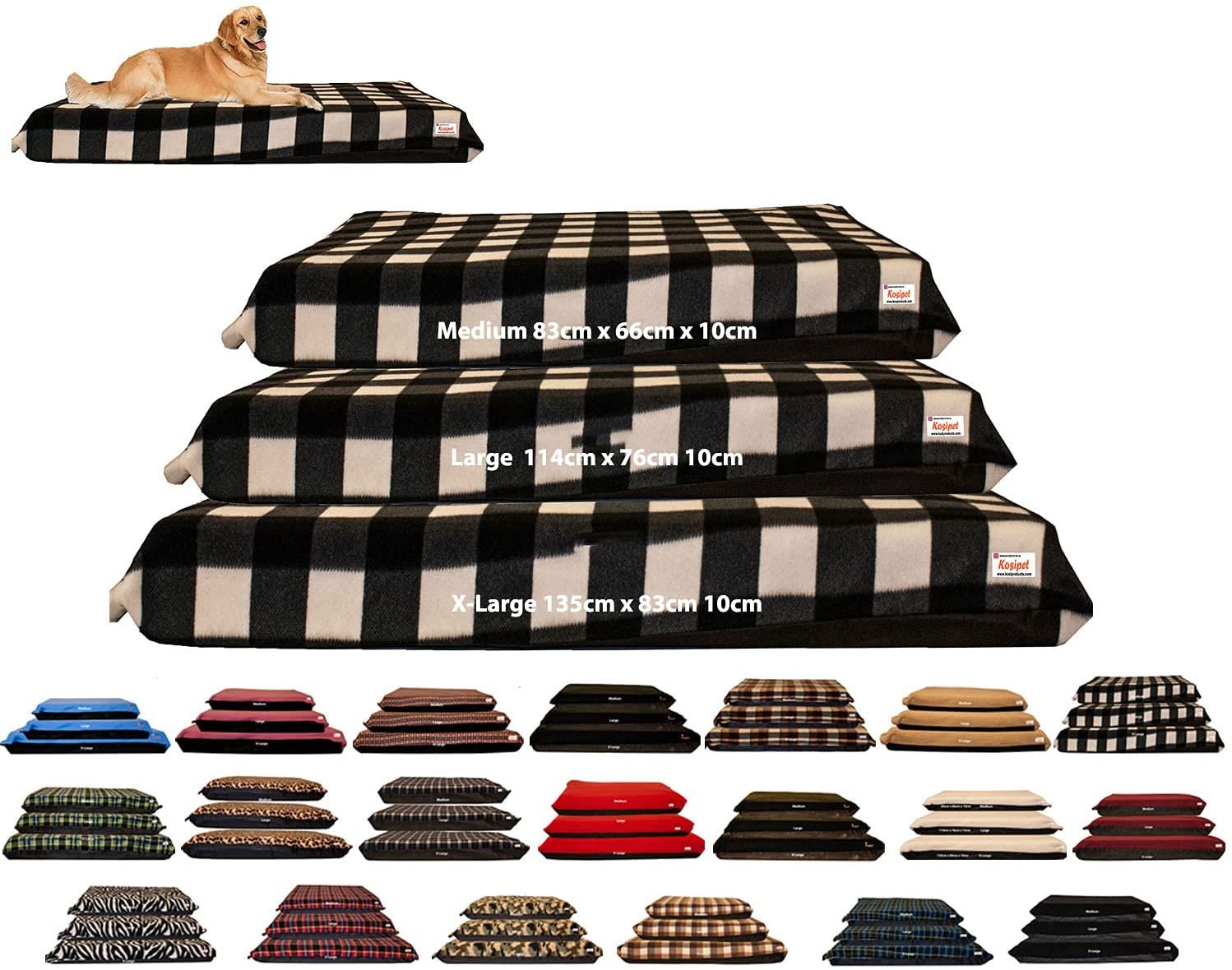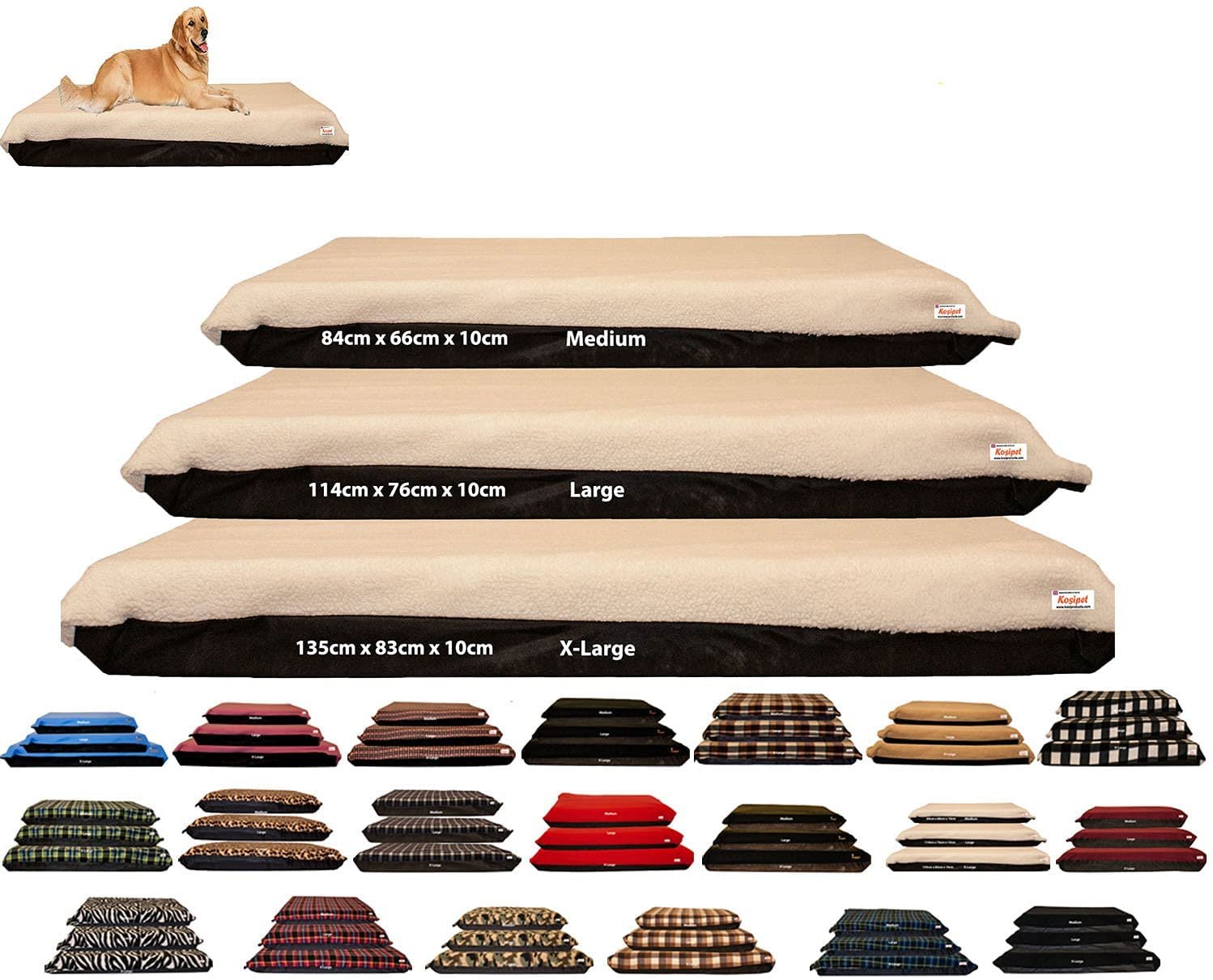 These High Density Dog Beds Come in Three Sizes: Medium 83cm x 66cm x 10cm Approx. LARGE: 114cm x 76cm x 10cm approx. X-LARGE: 135cm x 83cm x 10cm Approx. Handmade with premium materials giving the ultimate experience for your dog.