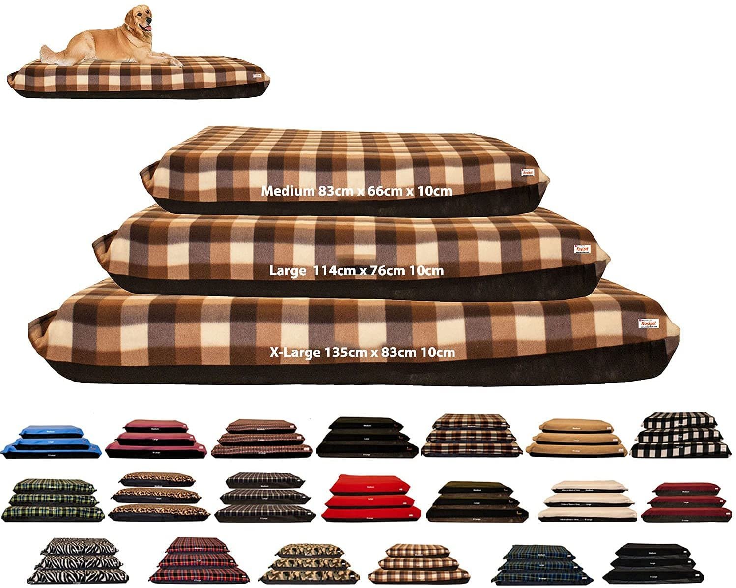 KosiPet® Waterproof Dog Bed, Deluxe Foam Mattress, Removable Outer Cover, (BLUE CHECK, EXTRA LARGE)