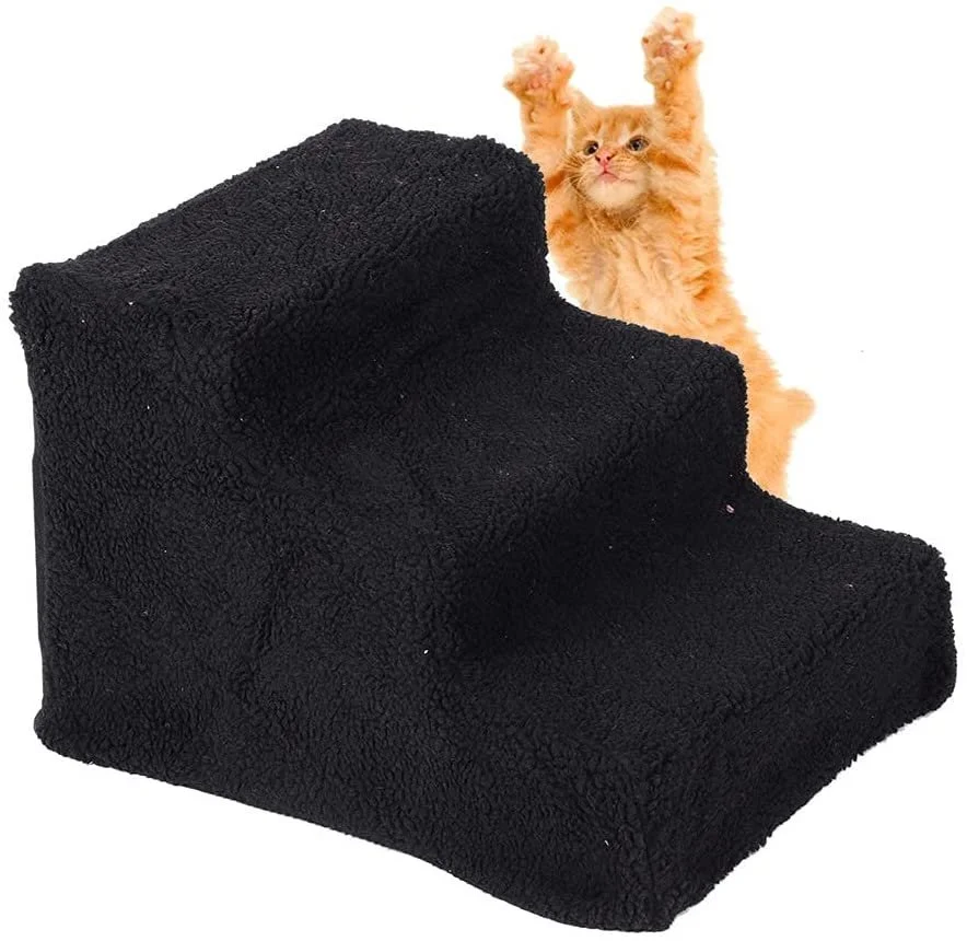 lahomie Pet Steps, Pet Stairs Ramps oft Padded Covered Doggy Steps Tall Beds Lightweight Pet Ladders for Small Dogs and Cats(Schwarz)