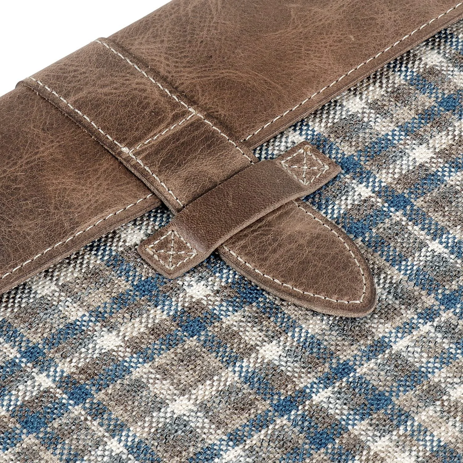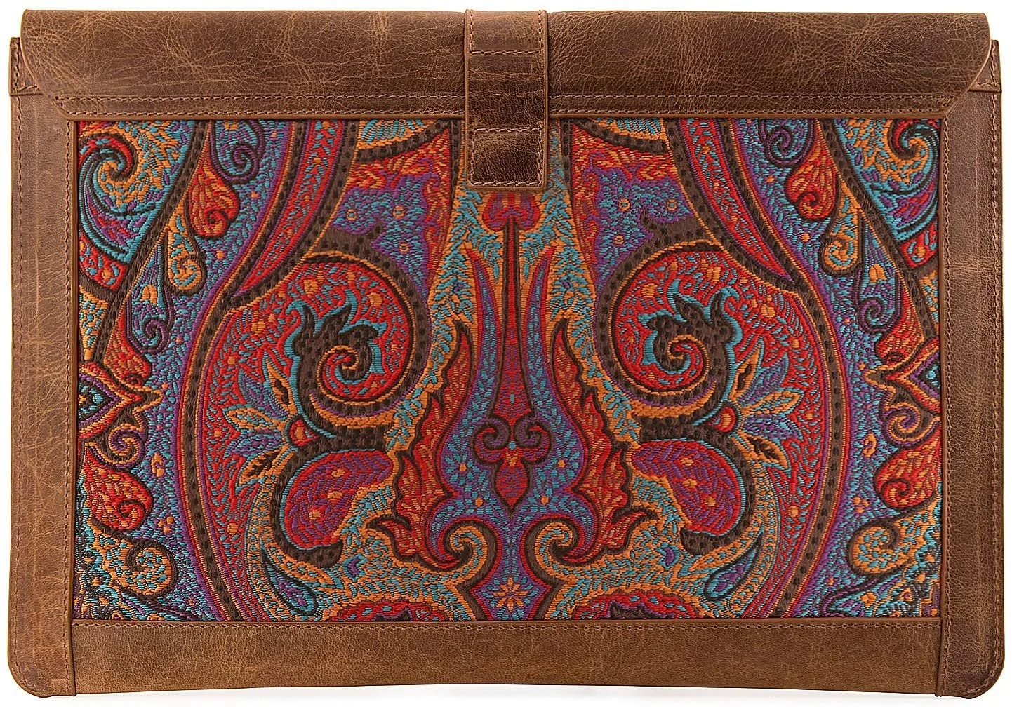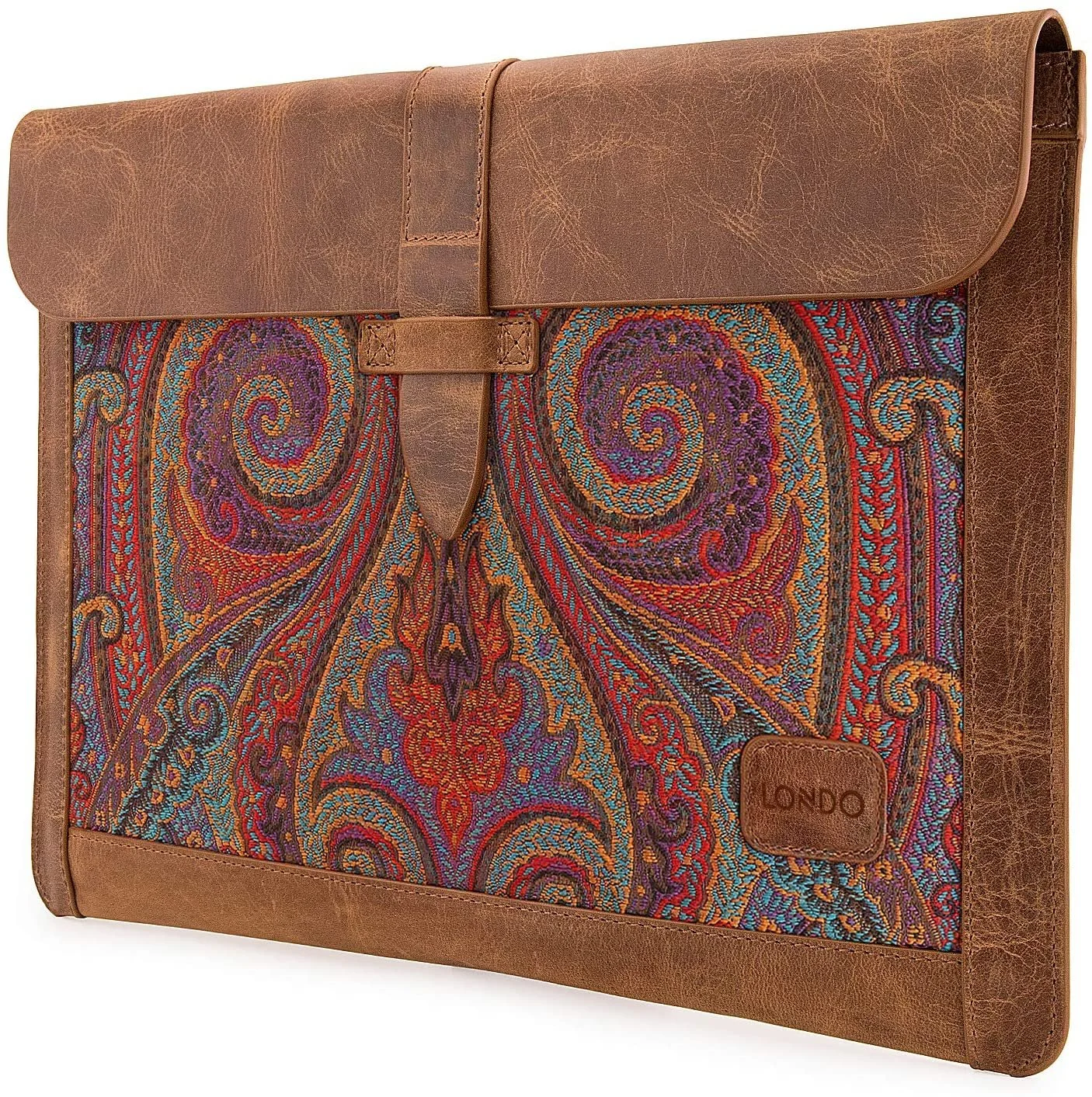 STYLISH – The Londo Genuine Leather Sleeve Bag comes in three varieties Blue drop and colorful mosaic patterns are woven jacquard linen polyester the ethnic brown variety is woven linen Choose a style that best fits your personality