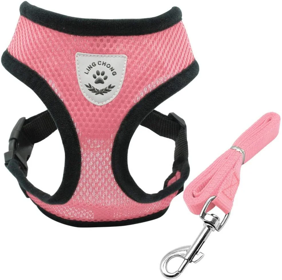MMWW Mesh Cat Harness and Leash Breathable Reflective Kitten Cats Harnesses Small Dog Puppy Harness for French Bulldog Chihuahua Pug-Pink_L