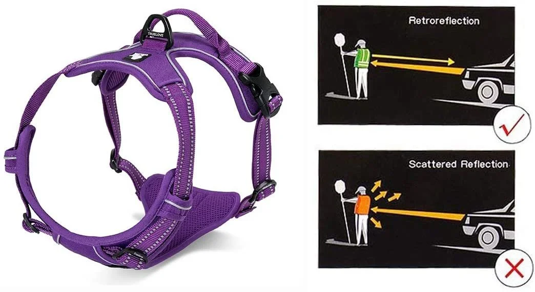 safety your features include Nylon webbing with reflective material for Good visibility at night and Sturdy handle for easy seat belt attachment while riding in your car.reflective Nylon webbing ensure good visibility for this high-end Dog Harness.