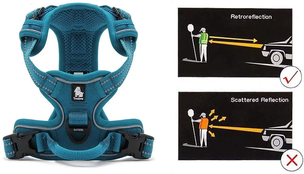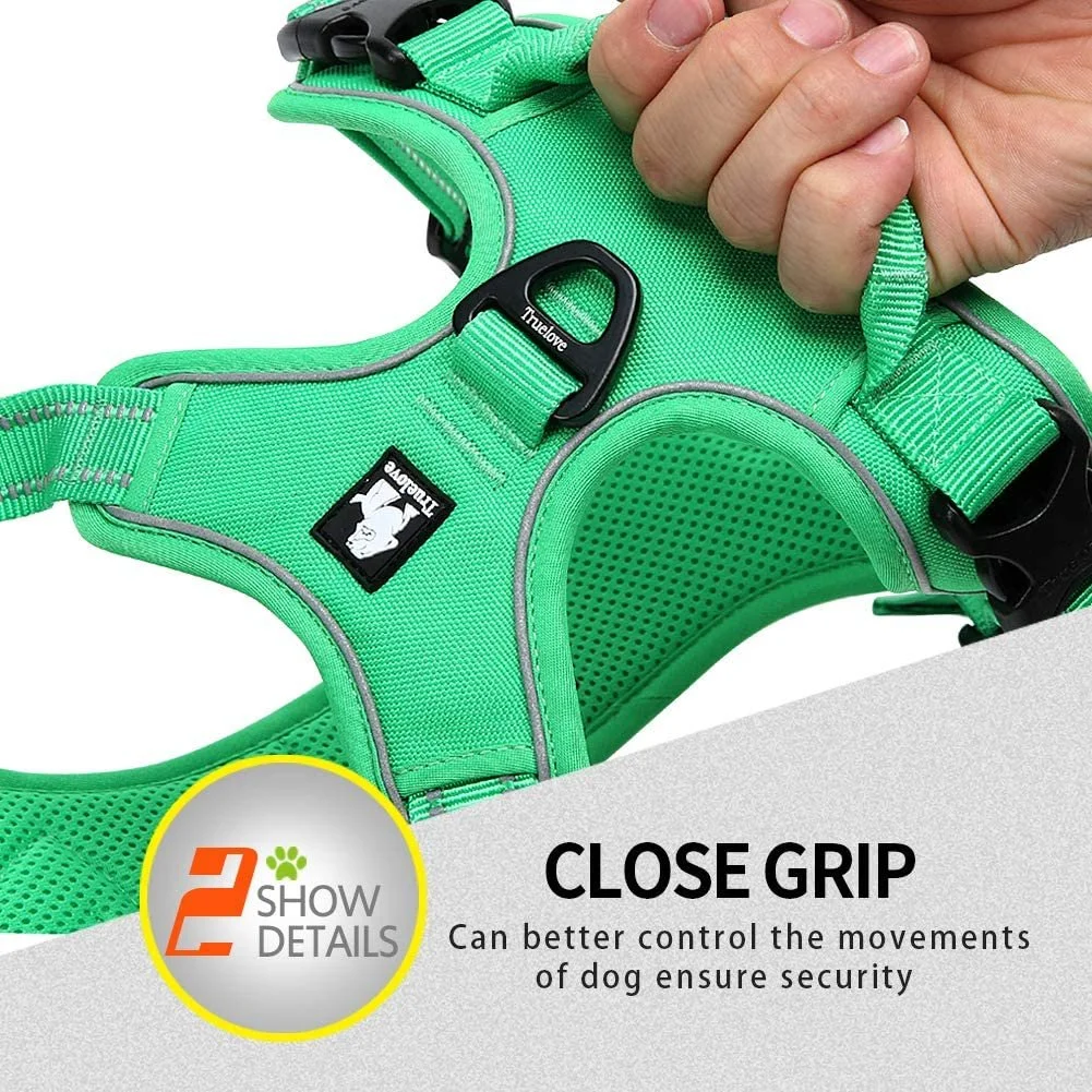 MOKCCI Truelove Soft Front Dog Harness .Best Reflective No Pull Harness with Handle and 2 Leash Attachments