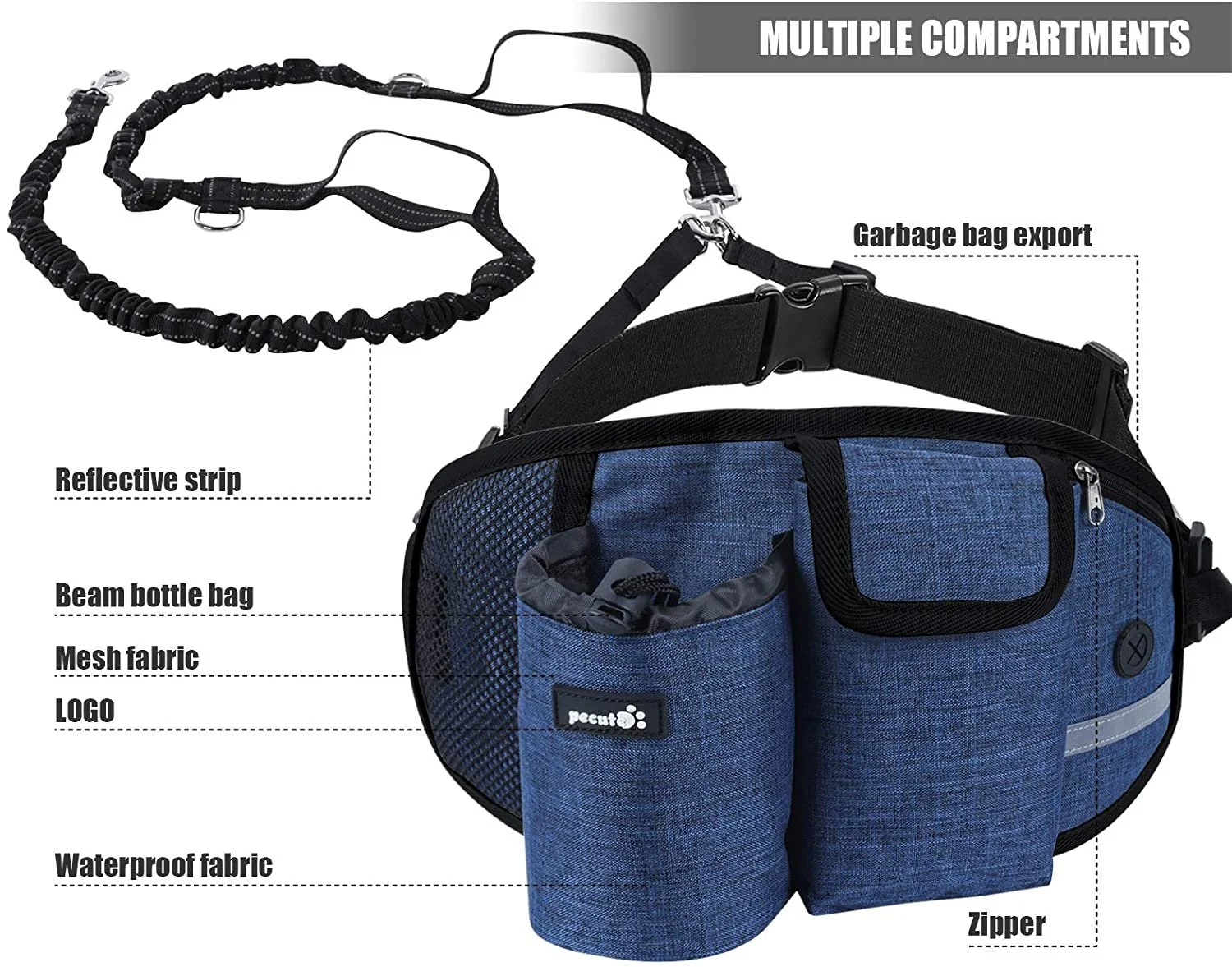 - πΎγπππ π π ππ πππππ πππγThere is the reflective element on the Waist bag and the reflective webbing on the leash, which increases visibility in low light, enhancing safety when walking your pet in the early morning and evening!