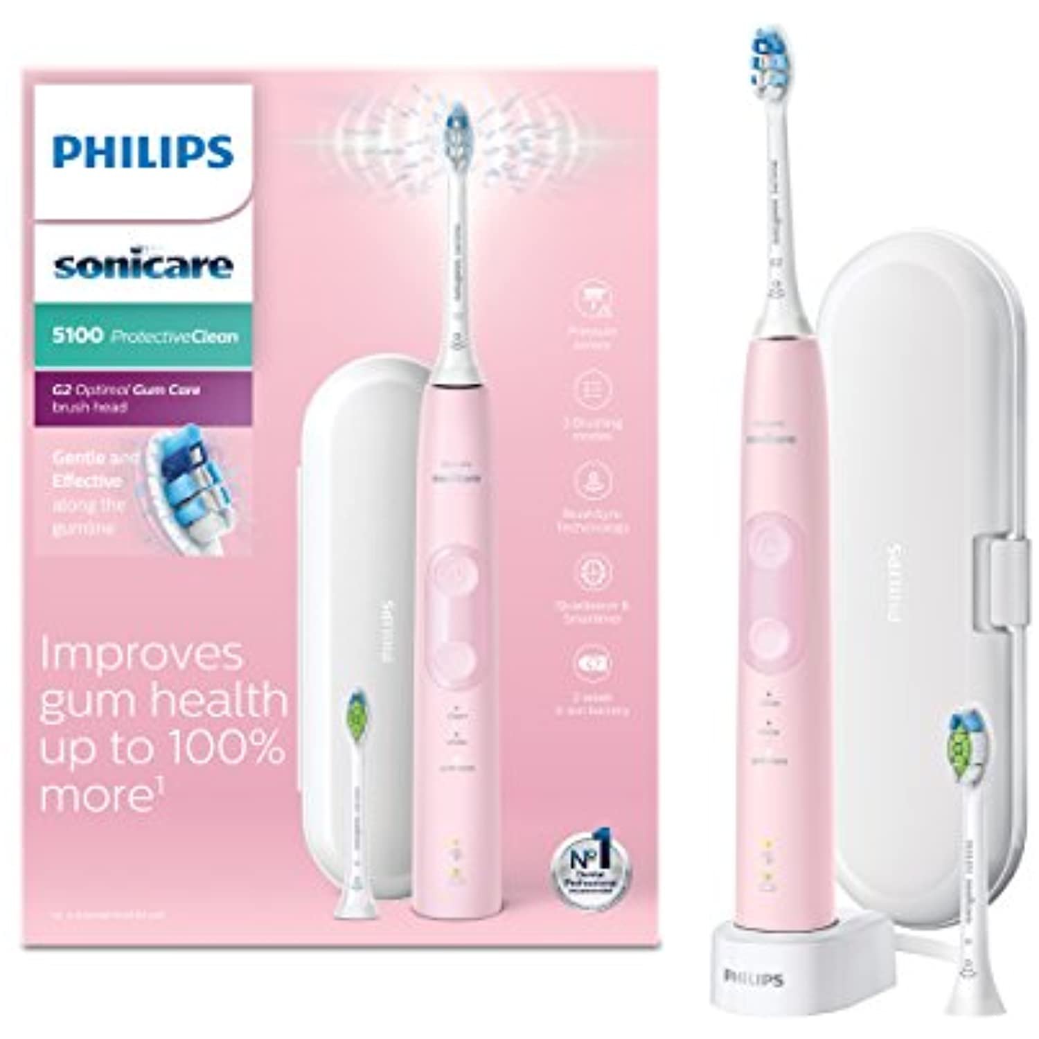 Philips Sonicare ProtectiveClean Model 5100 Electric Toothbrush, Pastel Pink