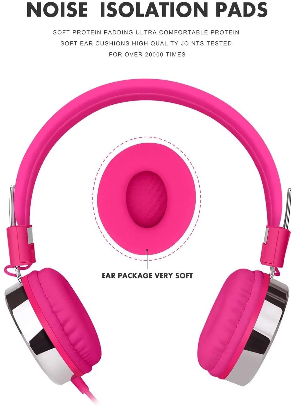 Rockpapa Love Heart On Ear Wired Headphones Earphones Foldable, Adjustable Headband for Kids Child Toddler Teens Age 3-15, Mp3/4 CD DVD Tablet Laptop Mobile Pink