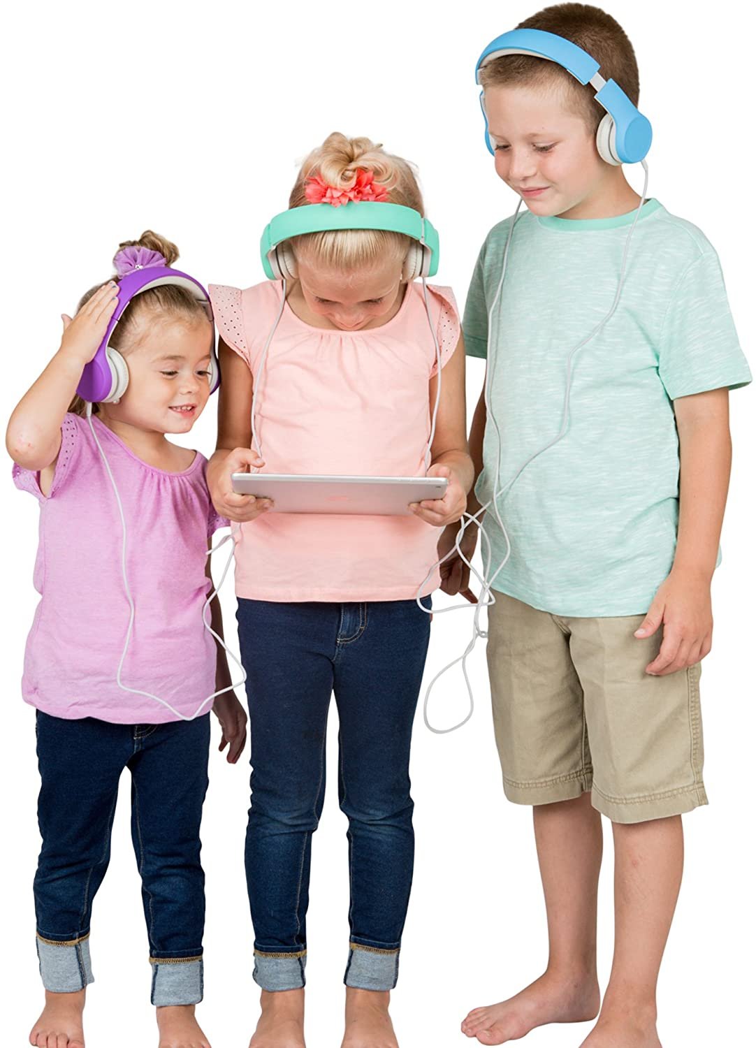 - Features a sharing port on every set - Connect one side of these kids headphones to your media device then connect the other side to a second set of headphones to allow a daisy chain of kids to all listen at once!